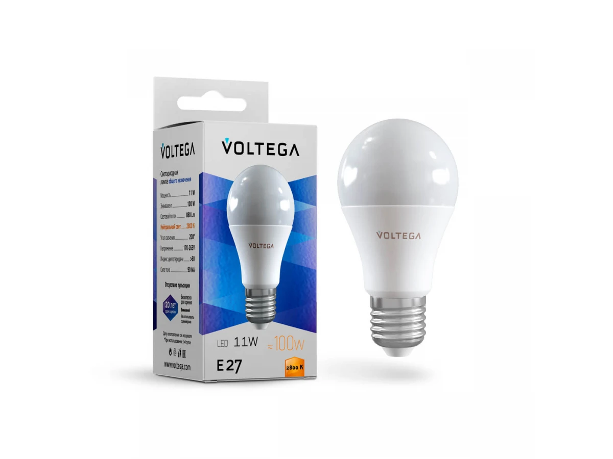Лампа светодиодная Voltega E27 10.5W 2800К матовая VG2-A2E27warm11W 5737