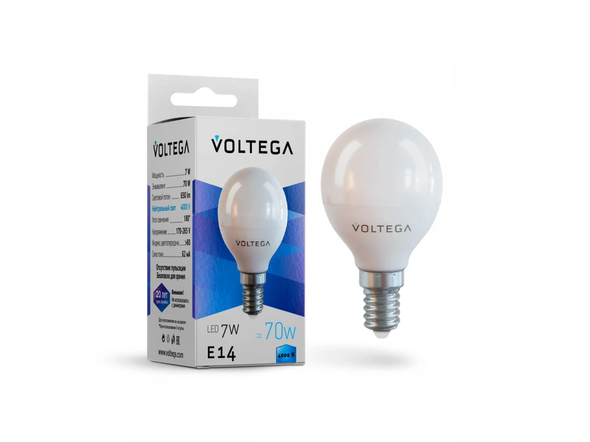 Лампа светодиодная Voltega E14 7W 4000К матовая VG2-G45E14cold7W 7055