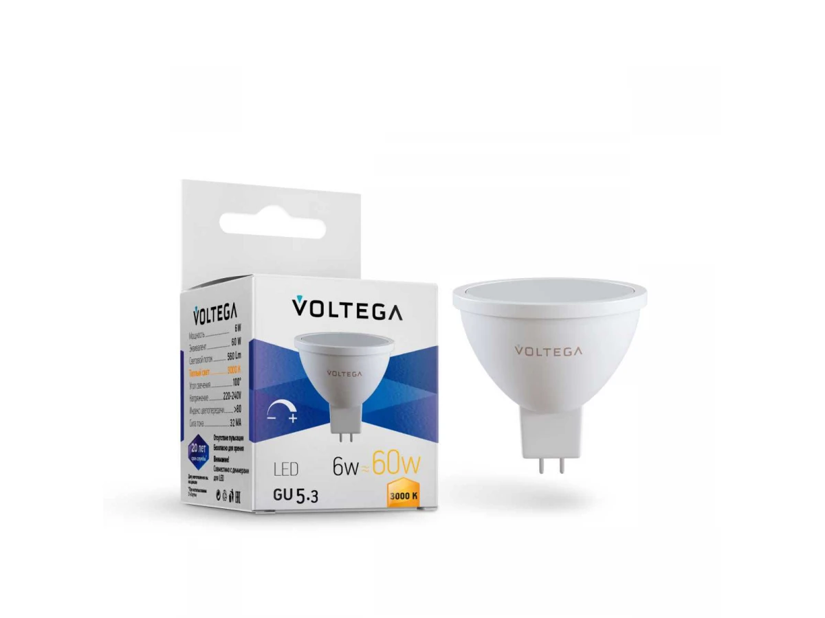 Лампа светодиодная диммируемая Voltega GU5.3 7W 3000K матовая 7257