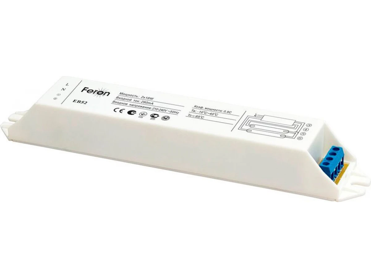 Аппарат пускорегулирующий электронный (балласт), 2*18W T8/G13 230V, EB52