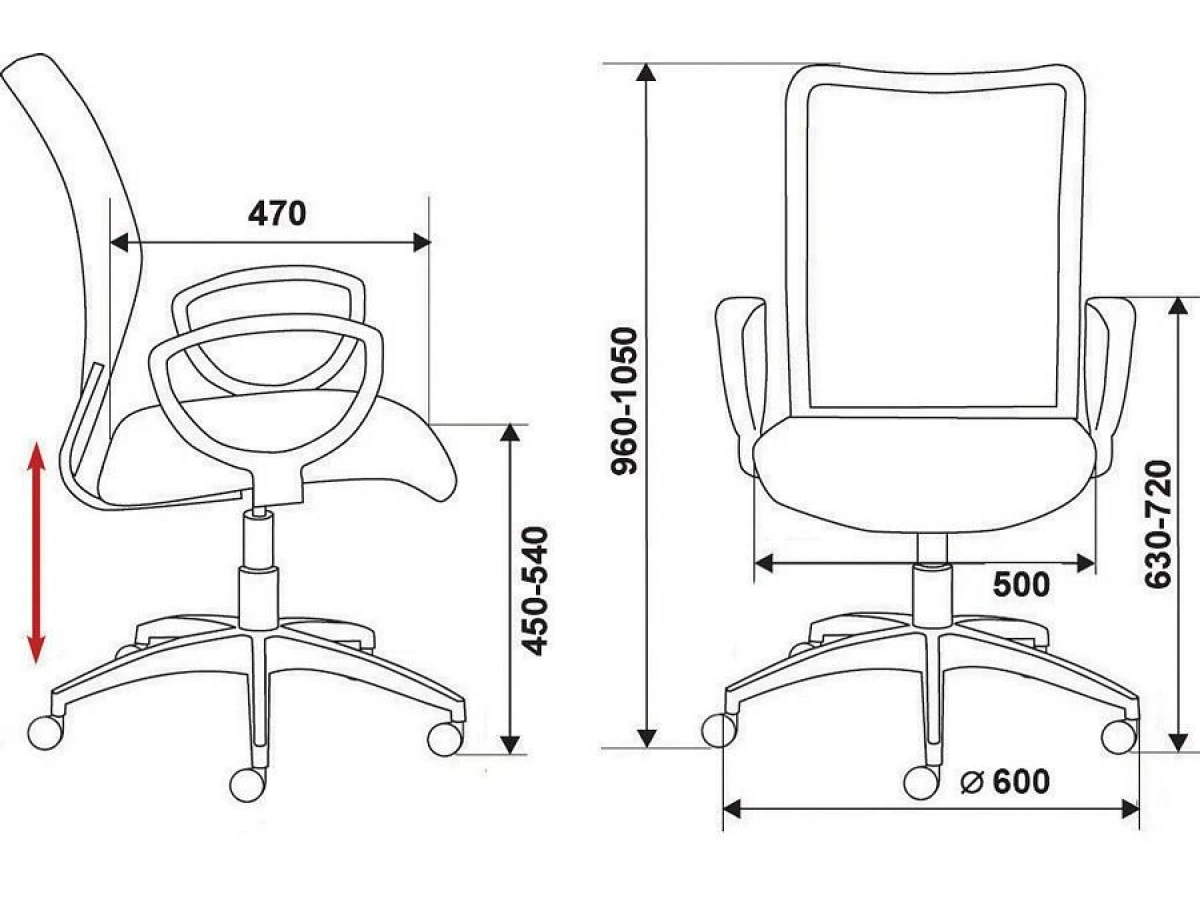 Высота подлокотников - 180 мм.
