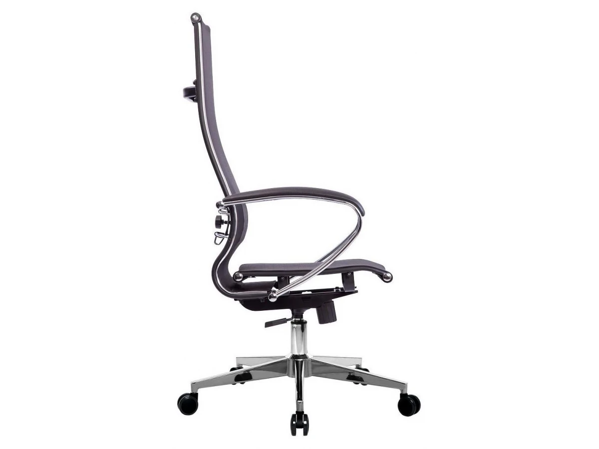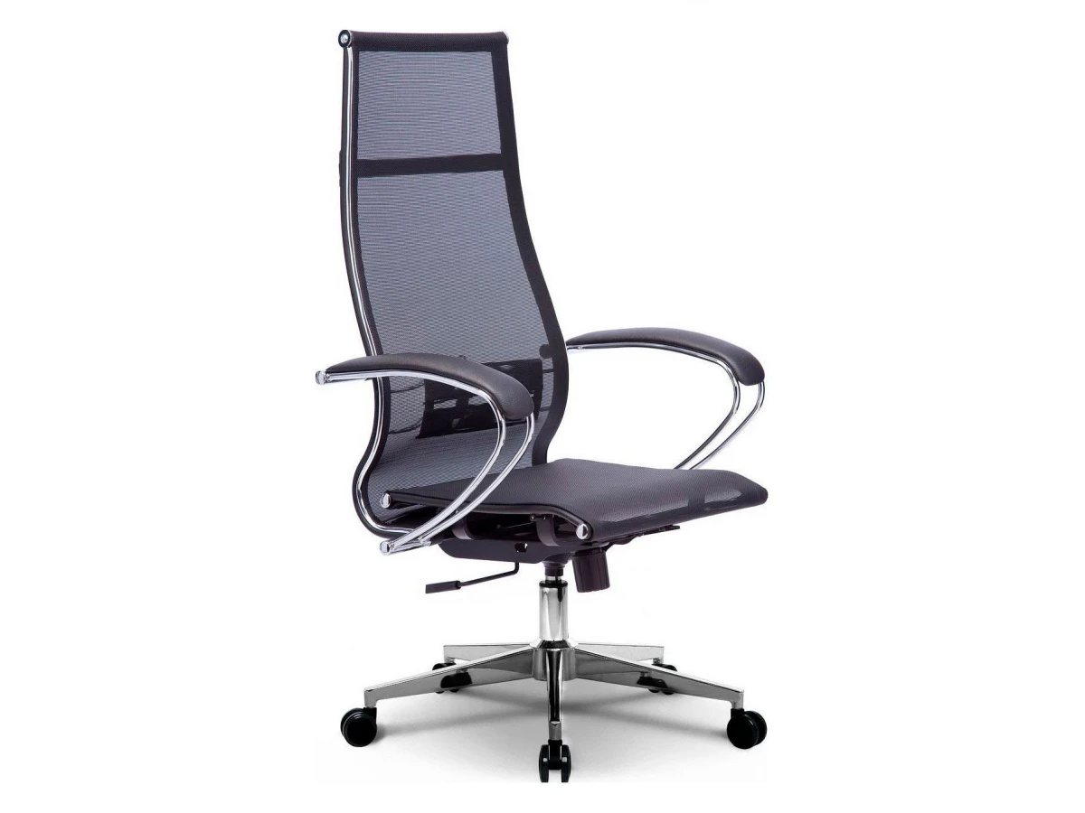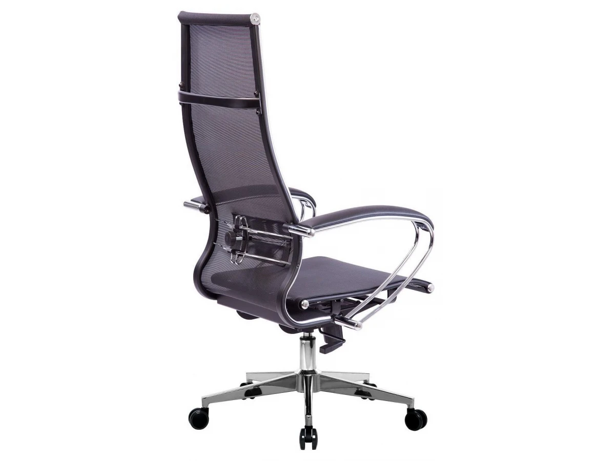 Подлокотники - стальные классические, покрытые зеркальным хромом. Обивка накладок - экокожа.