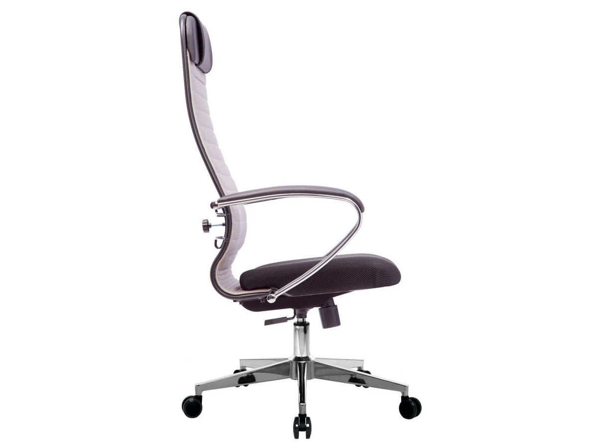 Подлокотники - стальные классические, покрытые зеркальным хромом. Обивка накладок - экокожа.