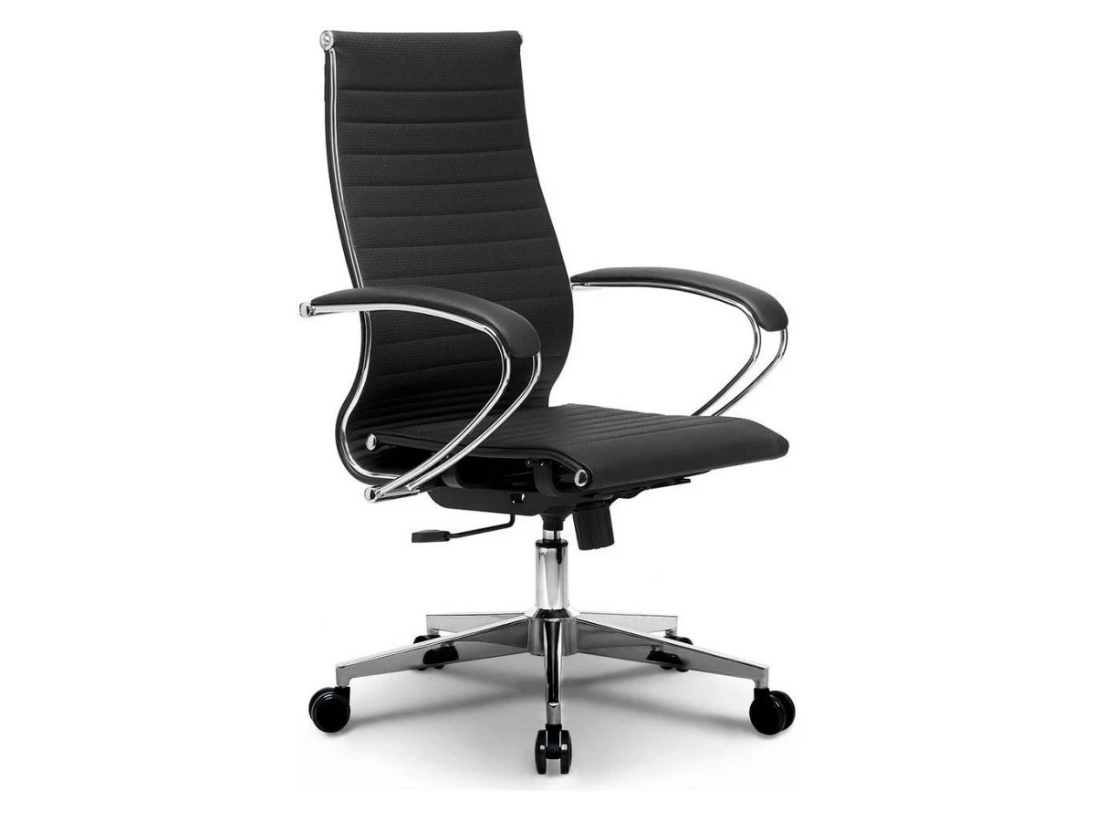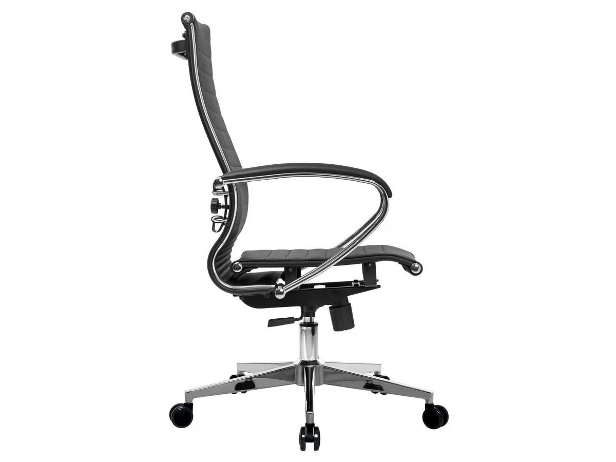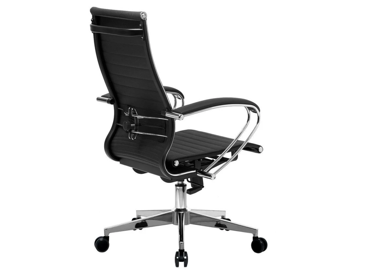 Подлокотники - стальные классические, покрытые зеркальным хромом. Обивка накладок - экокожа.