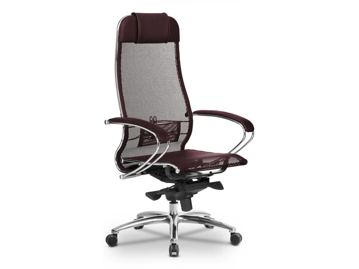 Компьютерное кресло S-1.04, темно-бордовый, кожа искусственная NewLeather, ткань сетчатая, армированная арамидным волокном