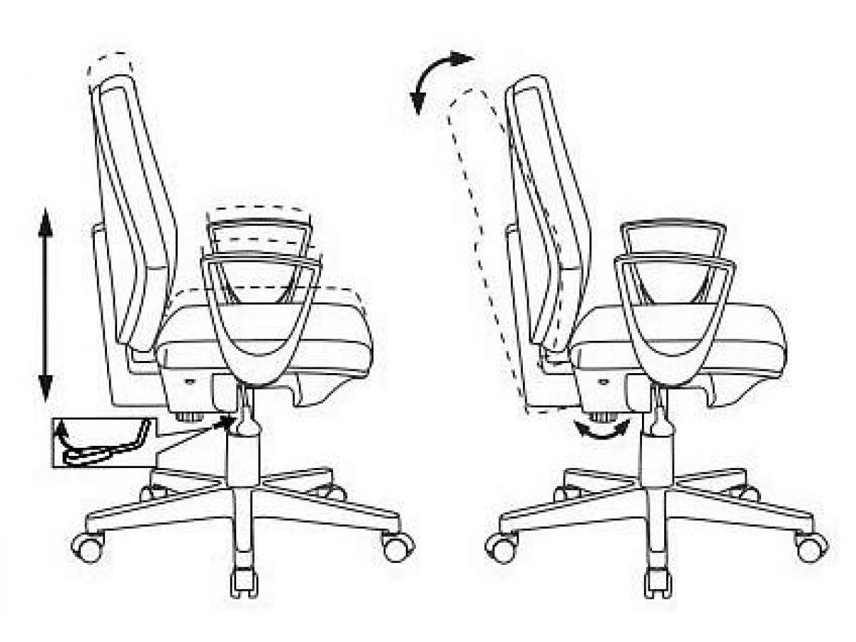 Пружинно-винтовой механизм качания спинки без фиксации. Регулировка высоты - газлифт.