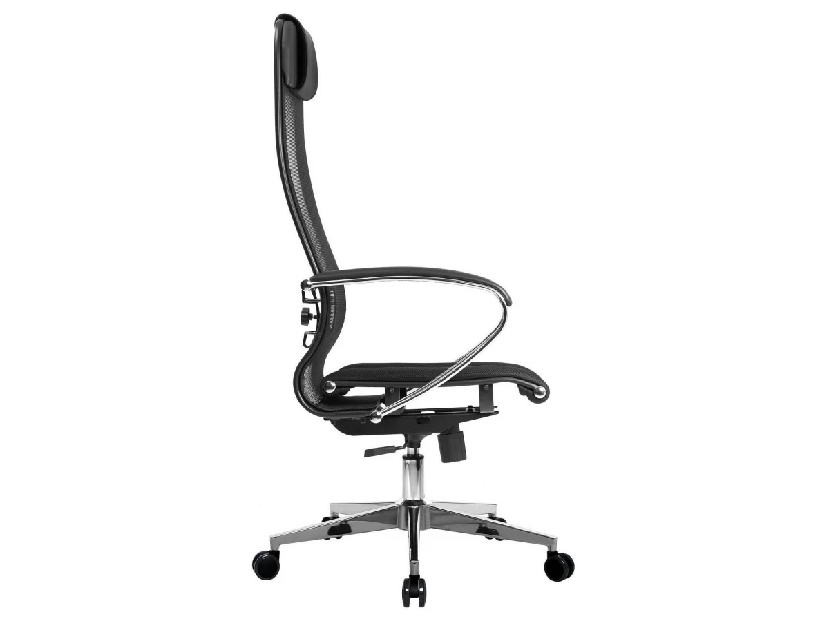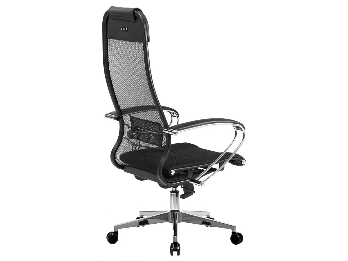 Подлокотники - стальные классические, покрытые зеркальным хромом. Обивка накладок - экокожа.