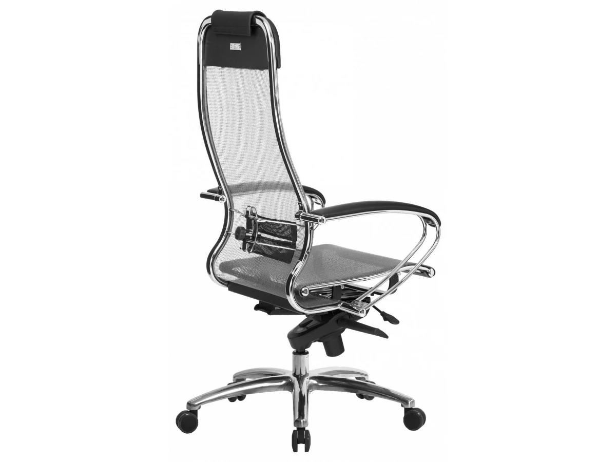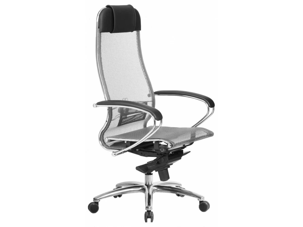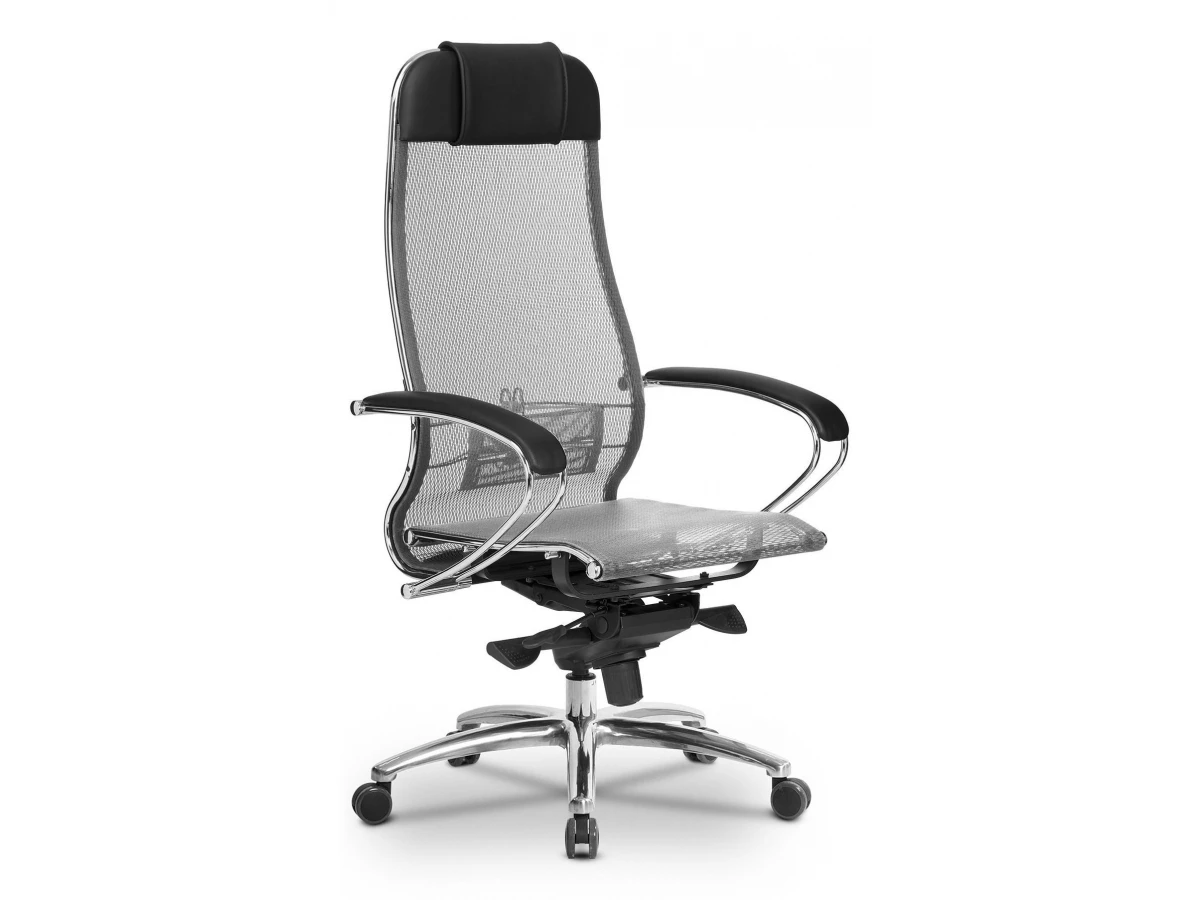 Кресло офисное S-1.04, серый, черный, кожа искусственная NewLeather, ткань сетчатая, армированная арамидным волокном