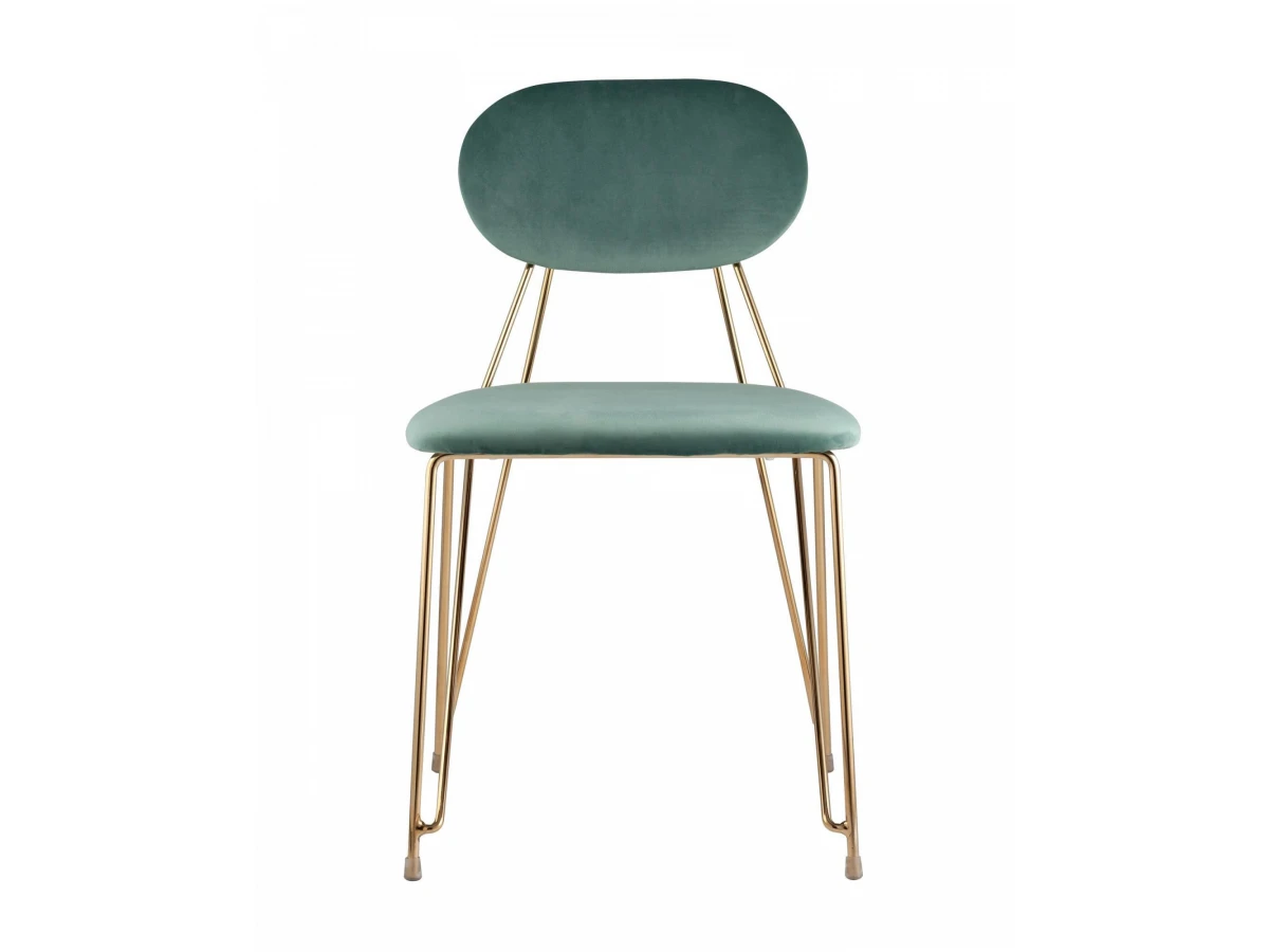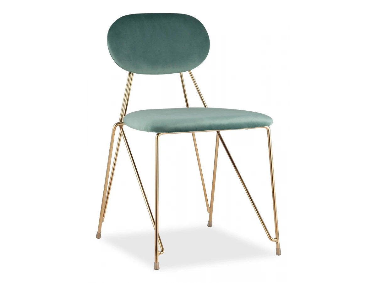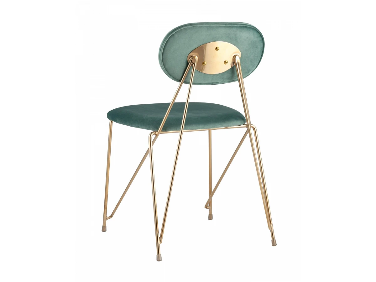Металлический каркас золотого цвета огибает спинку и выступает аккуратным акцентом модели.