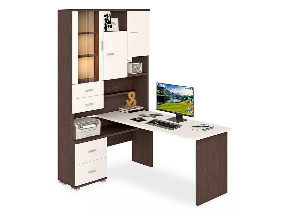 В современном мире мало кто обходится без персонального компьютера. Он необходим нам для работы, учебы или просто общения с близкими. Стол компьютерный Домино СР-620/160 – то, что нужно, чтобы сделать удобное рабочее место, которое позволит разместиться с максимальным комфортом. Эта модель создана брендом 2735048, серия «Домино», на товар предоставляется гарантия (12 мес.). Матовый корпус сделан из долговечного и практичного материала (ЛДСП Е1) и отлично впишется в любой интерьер благодаря выигрышному оттенку (венге). Столешница, толщина которой составляет 25 мм (материал столешницы), имеет матовый верх, при этом общие габариты компьютерного стола составляют 1300 мм в ширину и 2160 мм в высоту. Производитель также включил в комплект шкаф комбинированный: 3 дверцы, 4 ящика, полки.