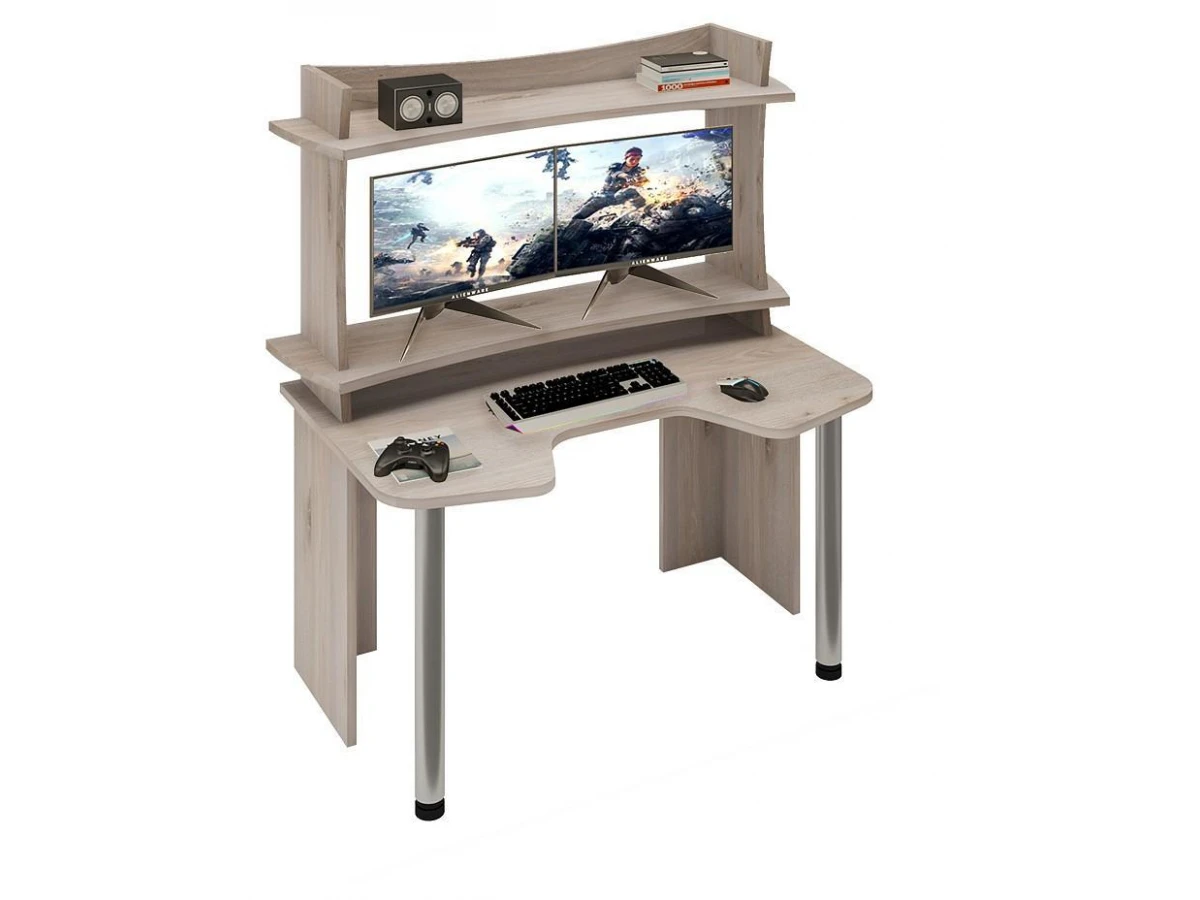 Дети делают на нем домашние задания, взрослые с его помощью зарабатывают деньги – компьютер актуален для всех. Стол компьютерный Домино Lite СКЛ-Игр140+НКИЛ140ВЛ MER_SKL-Igr140-NKIL140VL-N – то, что нужно, чтобы создать удобное рабочее пространство, которое позволит разместиться с максимальным комфортом. Эта модель создана компанией 2735048, серия «Домино Lite», на товар предоставляется гарантия (12 мес.). Глянцевый, матовый корпус сделан из долговечного и практичного материала (ЛДСП Е1) и отлично впишется в любой интерьер благодаря эффектному оттенку (нельсон, хром). Столешница, толщина которой составляет мм (материал столешницы), имеет матовый верх, при этом общие габариты компьютерного стола составляют 1400 мм в ширину и 1570 мм в высоту. Производитель также включил в комплект надстройка: 2 полки. Приобрести Стол компьютерный Домино Lite СКЛ-Игр140+НКИЛ140ВЛ вы можете на нашем сайте за 12990 руб.
