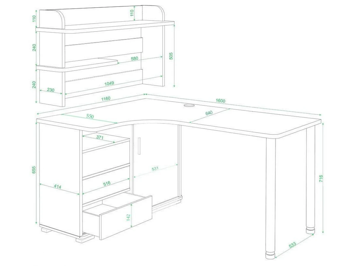 Компьютер давно стал частью нашей жизни. Стол компьютерный Домино СР-165М MER_SR-165M-BE-LEV – то, что нужно, чтобы сделать полноценное рабочее пространство, которое позволит разместиться с максимальным комфортом. Данная модель создана брендом 2735048, серия «Домино», на продукцию предоставляется гарантия (12 мес.). Глянцевый, матовый корпус изготовлен из износостойкого и надежного материала (ЛДСП Е1) и отлично впишется в любой интерьер благодаря эффектному оттенку (белый жемчуг, хром). Столешница, толщина которой составляет мм (материал столешницы), имеет матовый верх, при этом общие габариты компьютерного стола составляют 1160 мм в ширину и 1385 мм в высоту. Производитель также включил в комплект надстройка: