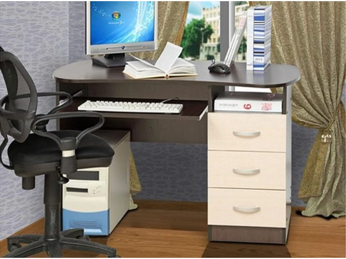 В современном мире мало кто обходится без персонального компьютера. Он необходим нам для работы, учебы или просто общения с близкими. Стол компьютерный Олимп – то, что нужно, чтобы создать качественное рабочее пространство, которое позволит разместиться с максимальным комфортом. Данная модель создана брендом 1299771, серия «Олимп», на продукцию предоставляется гарантия (24 мес.). Матовый корпус изготовлен из долговечного и практичного материала (ЛДСП Е1) и прекрасно впишется в любой интерьер благодаря эффектному оттенку (венге). Столешница, толщина которой составляет мм (материал столешницы), имеет матовый верх, при этом общие габариты компьютерного стола составляют 1138 мм в ширину и 754 мм в высоту. Производитель также включил в комплект выдвижная панель под клавиатуру;, тумбочка: 3 ящика.