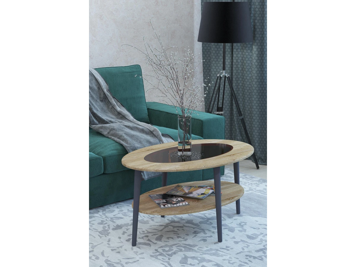 Стильный овальный журнальный столик со стеклом станет прекрасным дополнением к интерьеру любой гостиной. Оригинальное цветовое решение стола станет изюминкой гостиной и подчеркнет дизайн помещения.