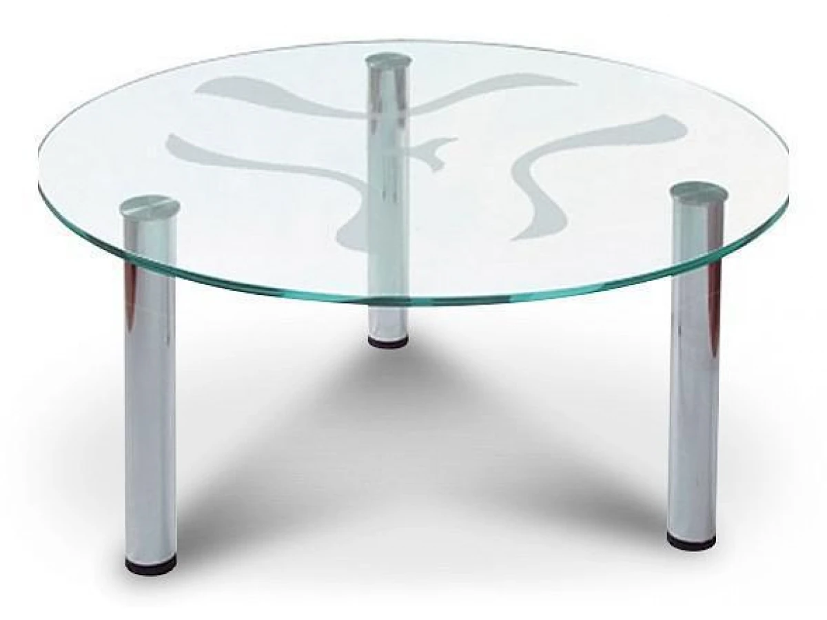 Опоры стола надежно крепятся к столешнице пятаками большого диаметра на УФ склейке. На столешницу нанесен абстрактный рисунок методом пескоструя. Стол компактно упакован и легко собирается.