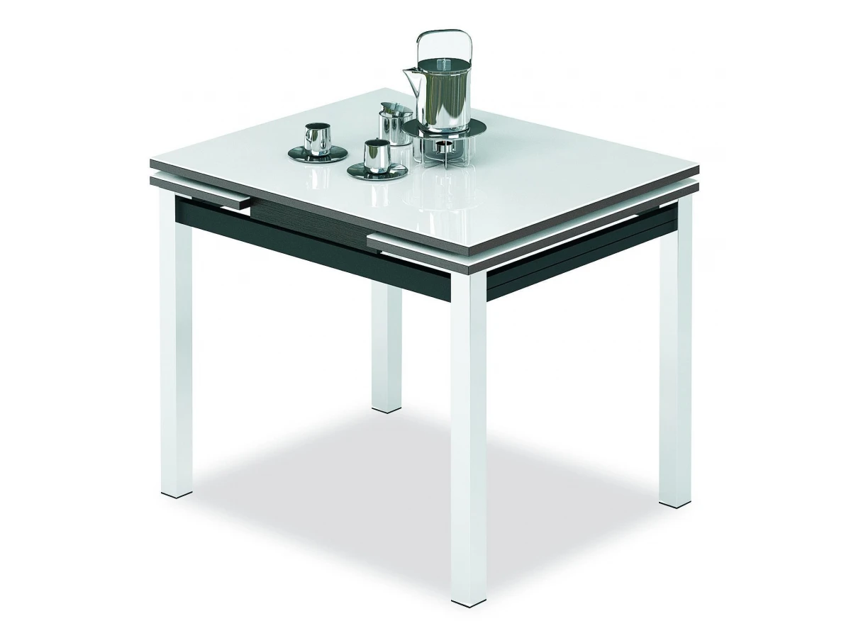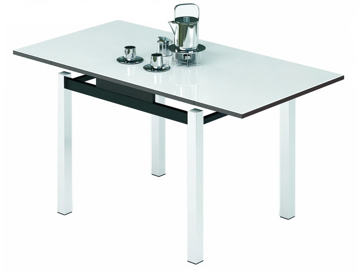 Стекло столешницы не выгорает, не боится влаги, горячего и средств бытовой химии (кроме абразивов). Механизмом трансформации за счет выдвижения боковых частей стола, поэтому стол может иметь три размера.