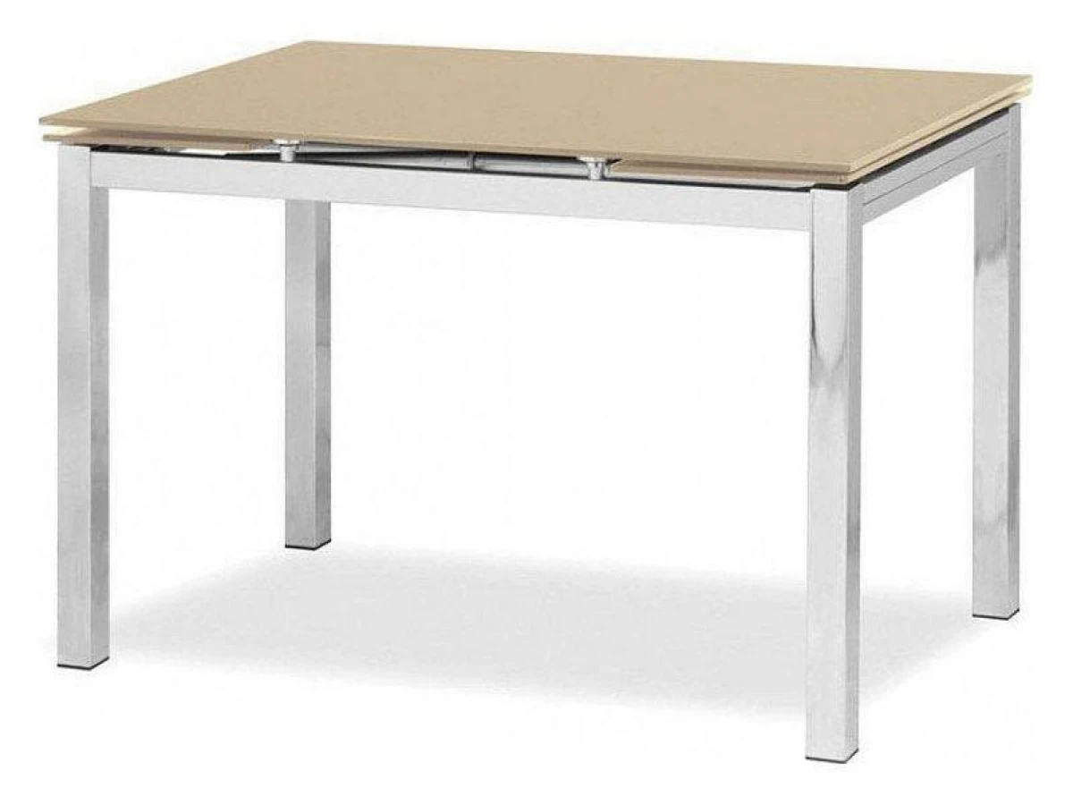 Столешница представляет собой комбинацию закаленного стекла и хрома.