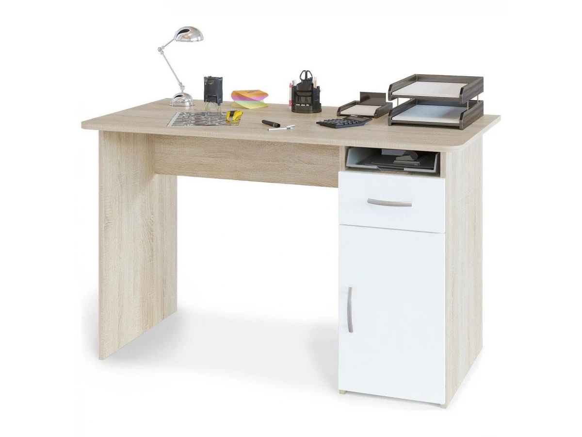 Классический письменный стол шириной 1200 мм со встроенной тумбокой.