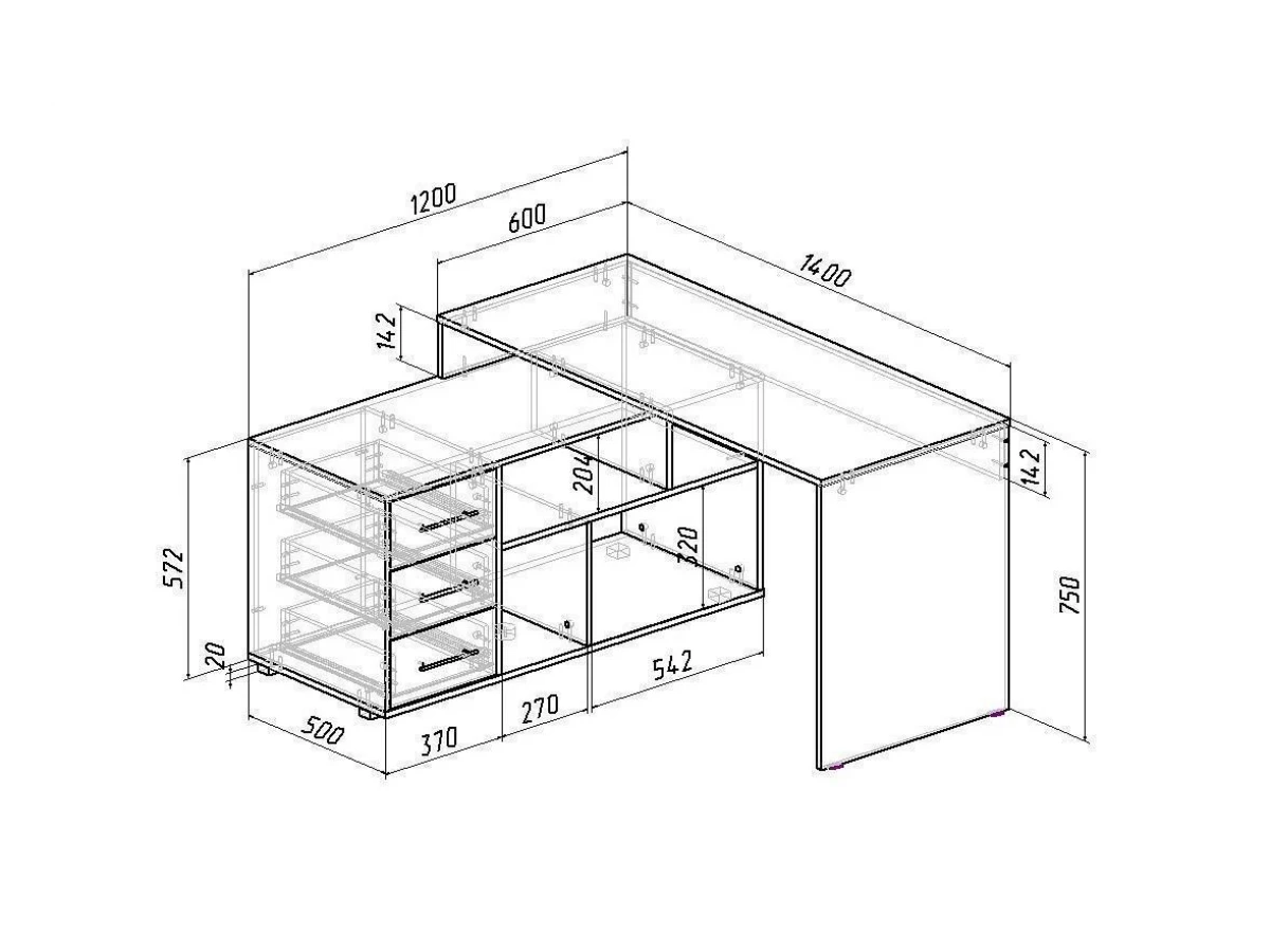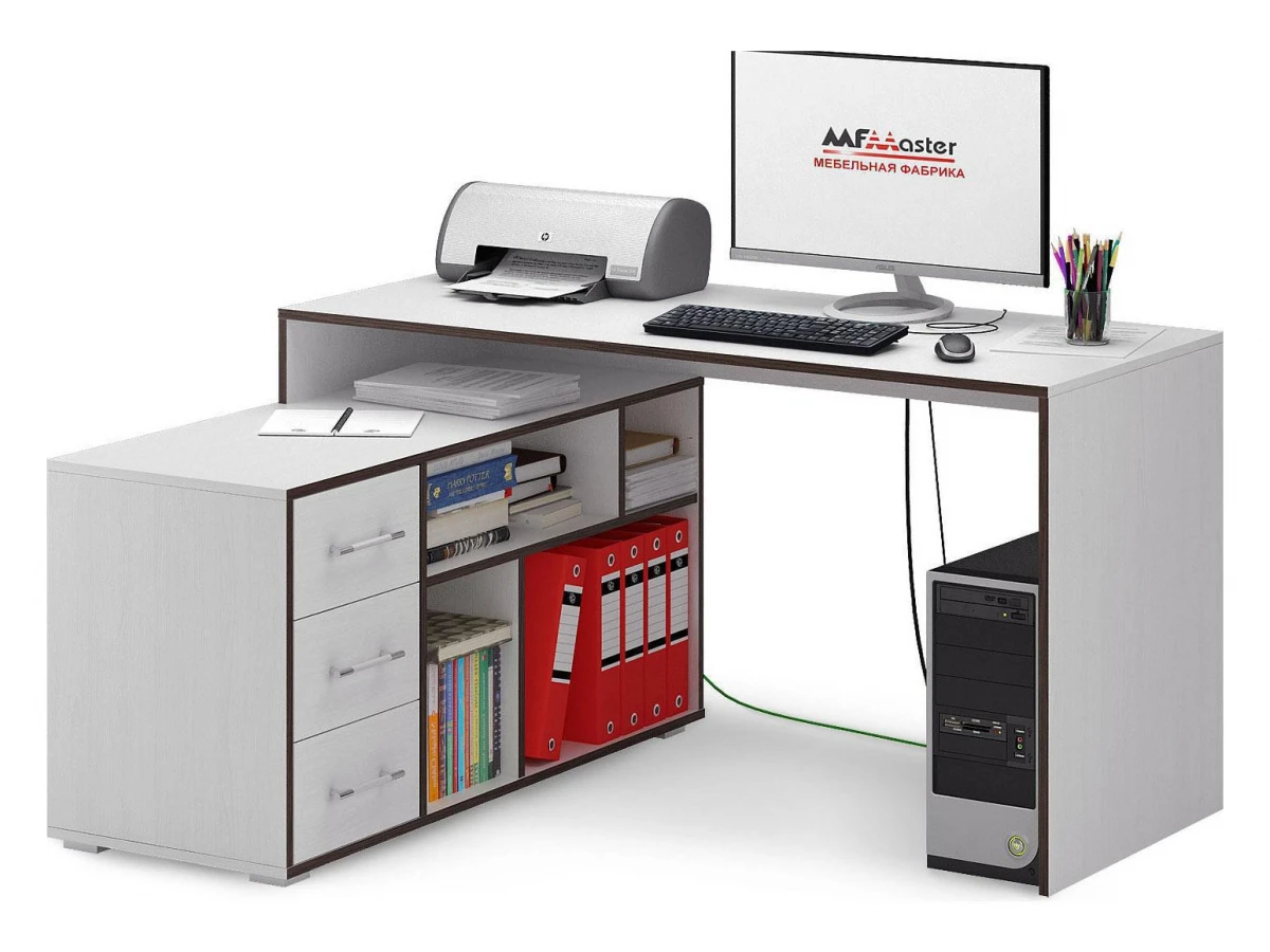 Работа, учеба или чтение – Стол письменный Краст-2 , созданный брендом 2735035, отлично подойдет для выполнения любых задач. Эта модель входит в серию «Краст» и адаптирован под потребности каждого члена семьи. Благодаря оптимальным размерам изделия (1400Х1200Х750 мм) вы сможете с комфортом заниматься любимыми и важными делами. Базовая комплектация включает в себя непосредственно письменный стол, тумба: 1 полка, 3 ящика. Для изготовления корпуса был выбран ЛДСП Е1 в оттенке белый, завершает дизайн матовый верхний слой, гармонично перекликающийся со столешницей.