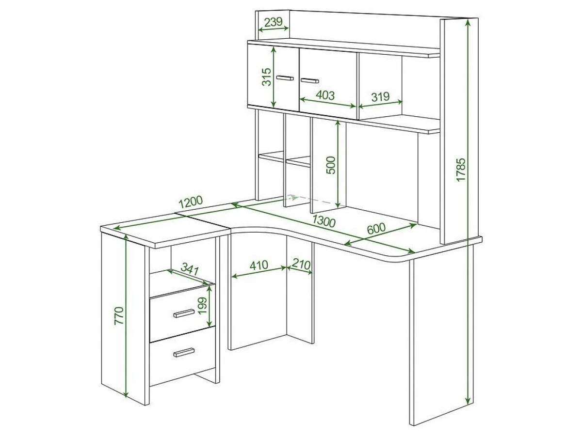 2 дверцы,4 полки,, тумбочка:1 полка,2 ящика. Купить Стол компьютерный Домино Lite СКЛ-Угл130+НКЛХ-130 вы можете на нашем сайте за 16990 руб.