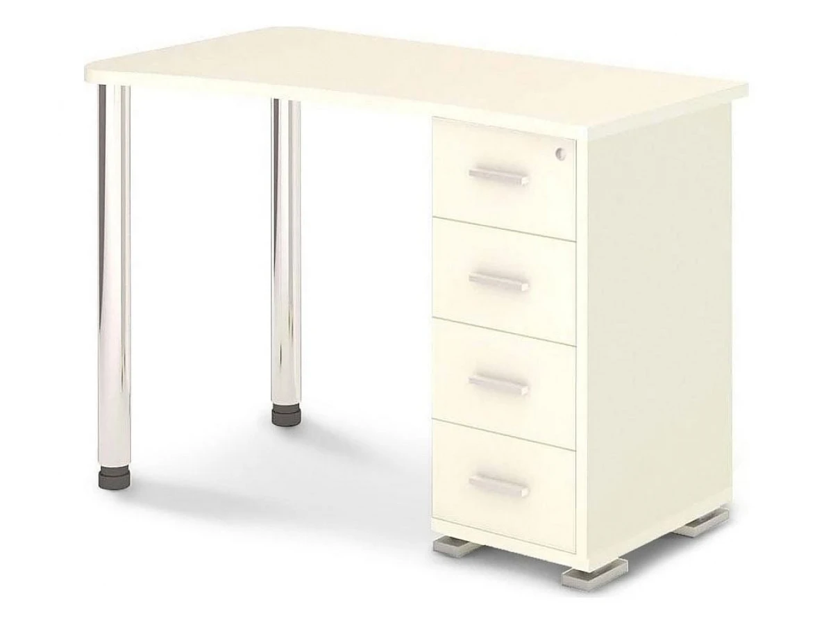 4 ящика. Для изготовления корпуса был выбран ЛДСП Е1, металл в оттенке белый, хром, завершает дизайн глянцевый, матовый верхний слой, гармонично сочетающийся со столешницей. Приобрести данную модель вы можете по привлекательной цене, равной 8990 руб.