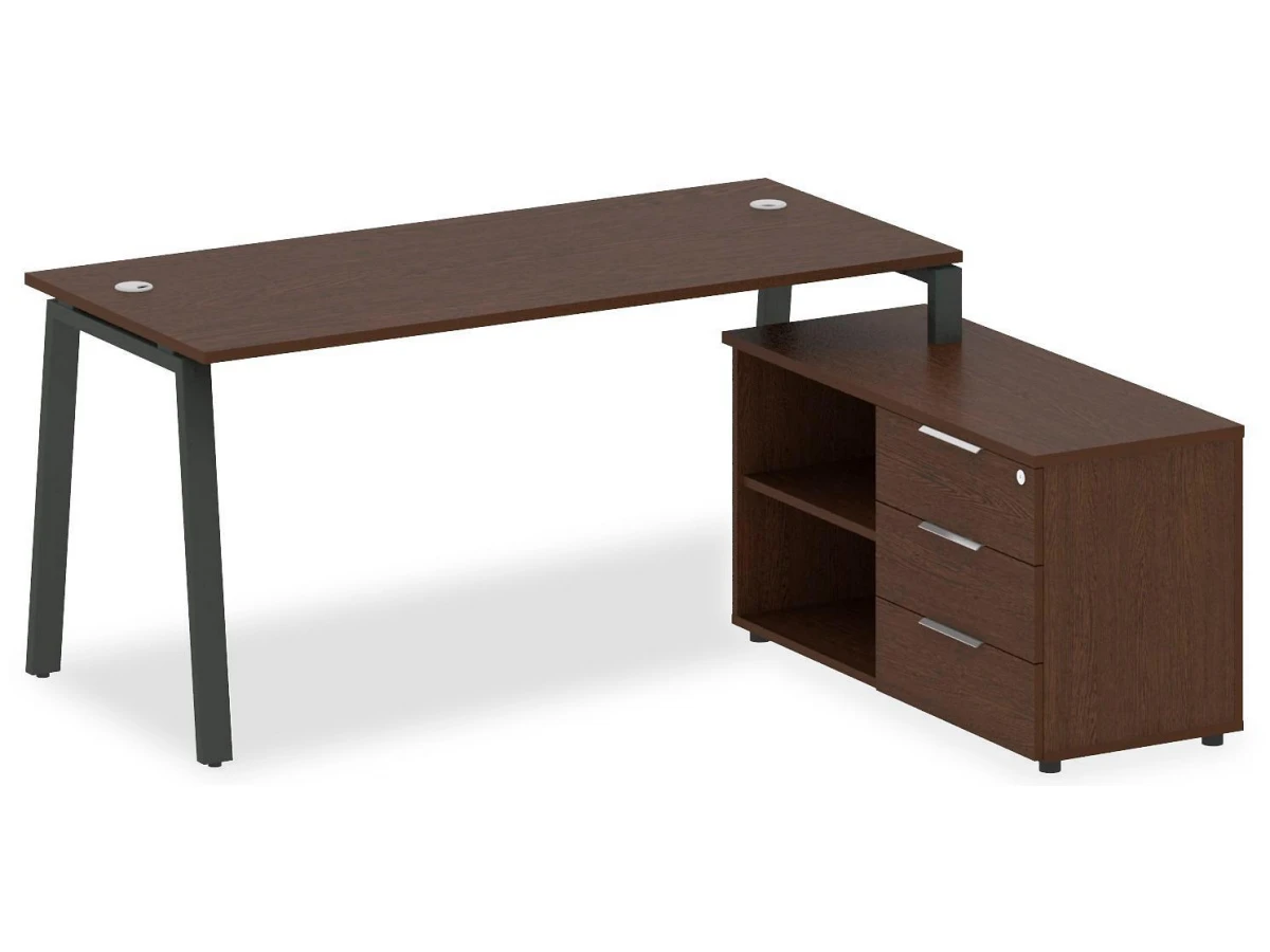 1 полка,3 ящика. Для изготовления корпуса был выбран ЛДСП Е1, металл в оттенке антрацит, венге, завершает дизайн матовый верхний слой, гармонично сочетающийся со столешницей. Купить данную модель вы можете по привлекательной цене, равной 32240 руб.