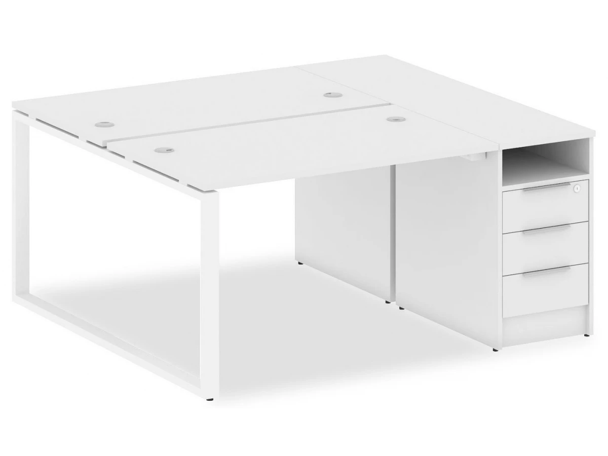 1 полка,3 ящика,, тумбочка:1 полка,3 ящика. Для изготовления корпуса был выбран ЛДСП Е1, металл в оттенке белый, завершает дизайн матовый верхний слой, гармонично сочетающийся со столешницей. Купить данную модель вы можете по привлекательной цене, равной 44486 руб.