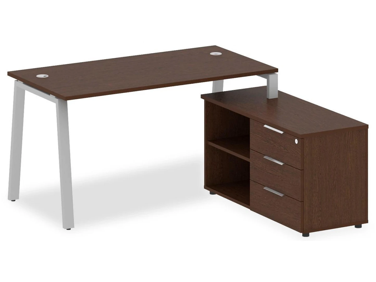 1 полка,3 ящика. Для изготовления корпуса был выбран ЛДСП Е1, металл в оттенке венге, серый, завершает дизайн матовый верхний слой, гармонично перекликающийся со столешницей. Приобрести данную модель вы можете по привлекательной цене, равной 32109 руб.