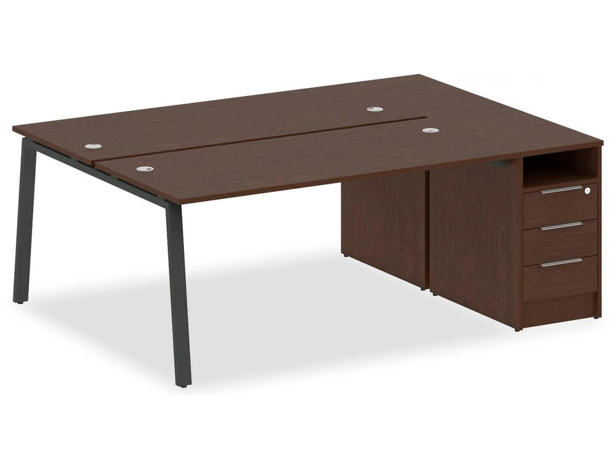 1 полка,3 ящика,, тумбочка:1 полка,3 ящика. Для изготовления корпуса был выбран ЛДСП Е1, металл в оттенке антрацит, венге, завершает дизайн матовый верхний слой, гармонично сочетающийся со столешницей. Приобрести данную модель вы можете по привлекательной цене, равной 44199 руб.
