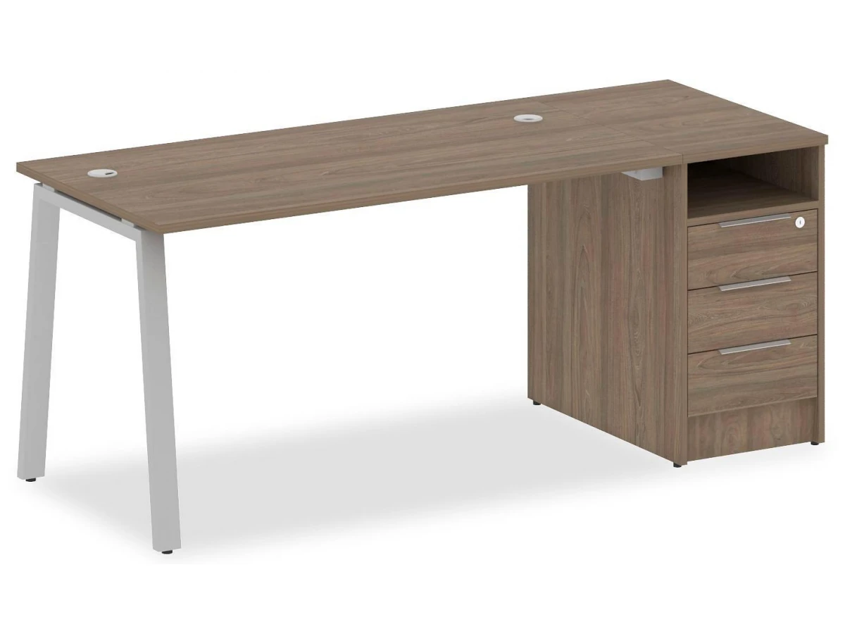 1 полка,3 ящика. Для изготовления корпуса был выбран ЛДСП Е1, металл в оттенке вяз, серый, завершает дизайн матовый верхний слой, гармонично сочетающийся со столешницей. Купить данную модель вы можете по привлекательной цене, равной 23025 руб.