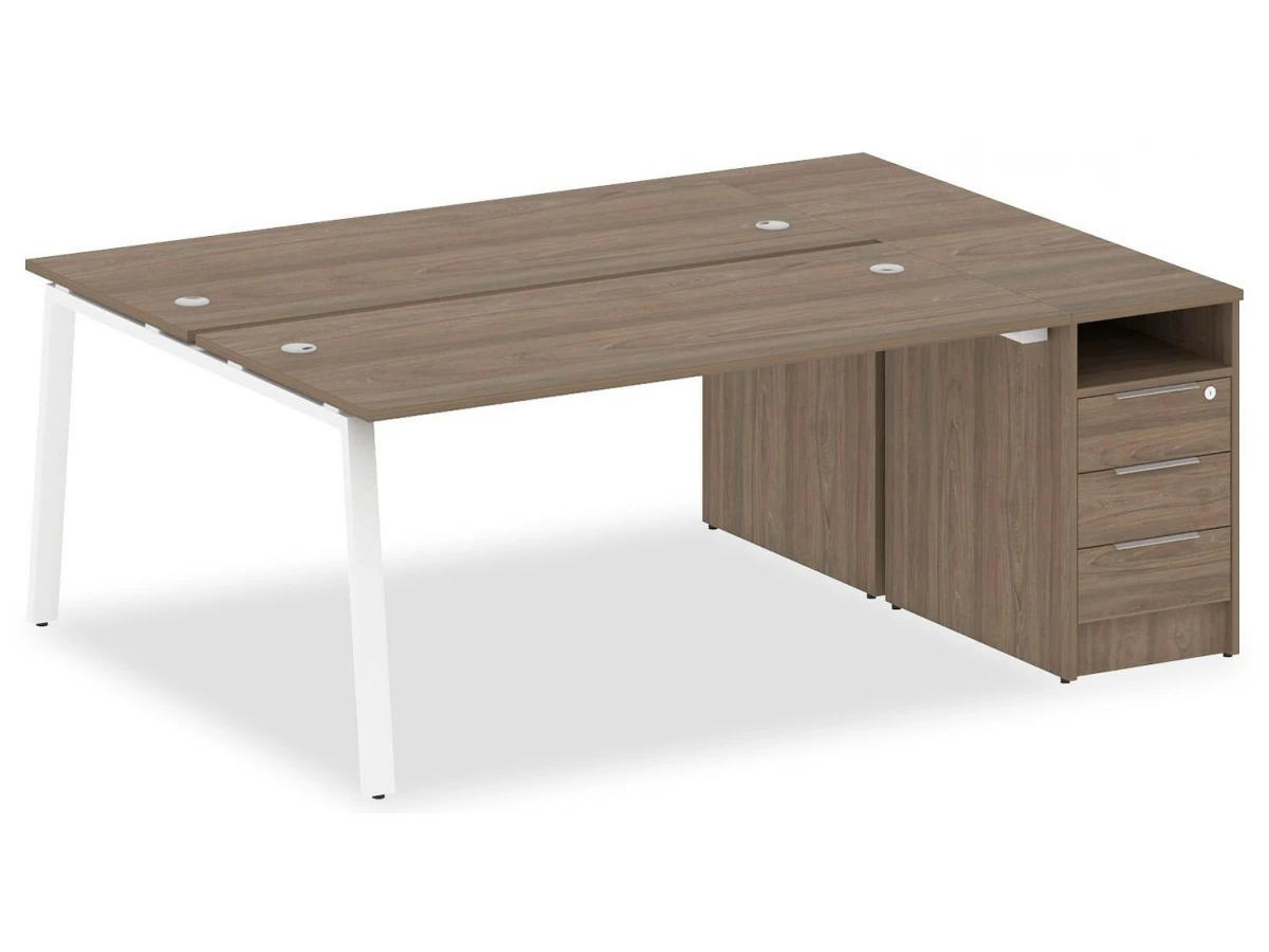 1 полка,3 ящика,, тумбочка:1 полка,3 ящика. Для изготовления корпуса был выбран ЛДСП Е1, металл в оттенке белый, вяз, завершает дизайн матовый верхний слой, гармонично сочетающийся со столешницей. Купить данную модель вы можете по привлекательной цене, равной 44199 руб.