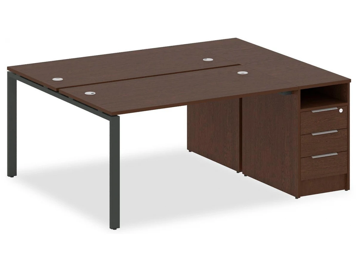 1 полка,3 ящика,, тумбочка:1 полка,3 ящика. Для изготовления корпуса был выбран ЛДСП Е1, металл в оттенке антрацит, венге, завершает дизайн матовый верхний слой, гармонично перекликающийся со столешницей. Купить данную модель вы можете по привлекательной цене, равной 43826 руб.