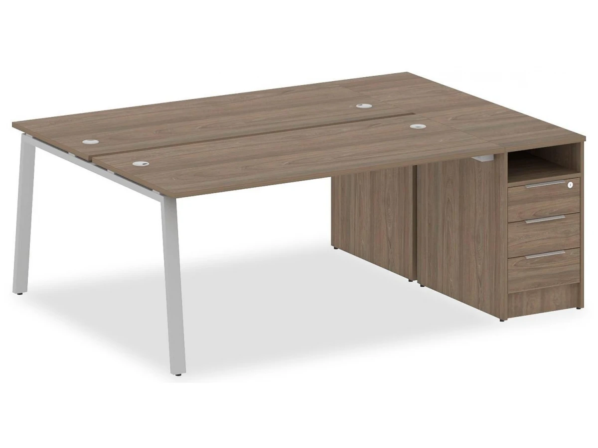 1 полка,3 ящика,, тумбочка:1 полка,3 ящика. Для изготовления корпуса был выбран ЛДСП Е1, металл в оттенке вяз, серый, завершает дизайн матовый верхний слой, гармонично сочетающийся со столешницей. Купить данную модель вы можете по привлекательной цене, равной 44199 руб.