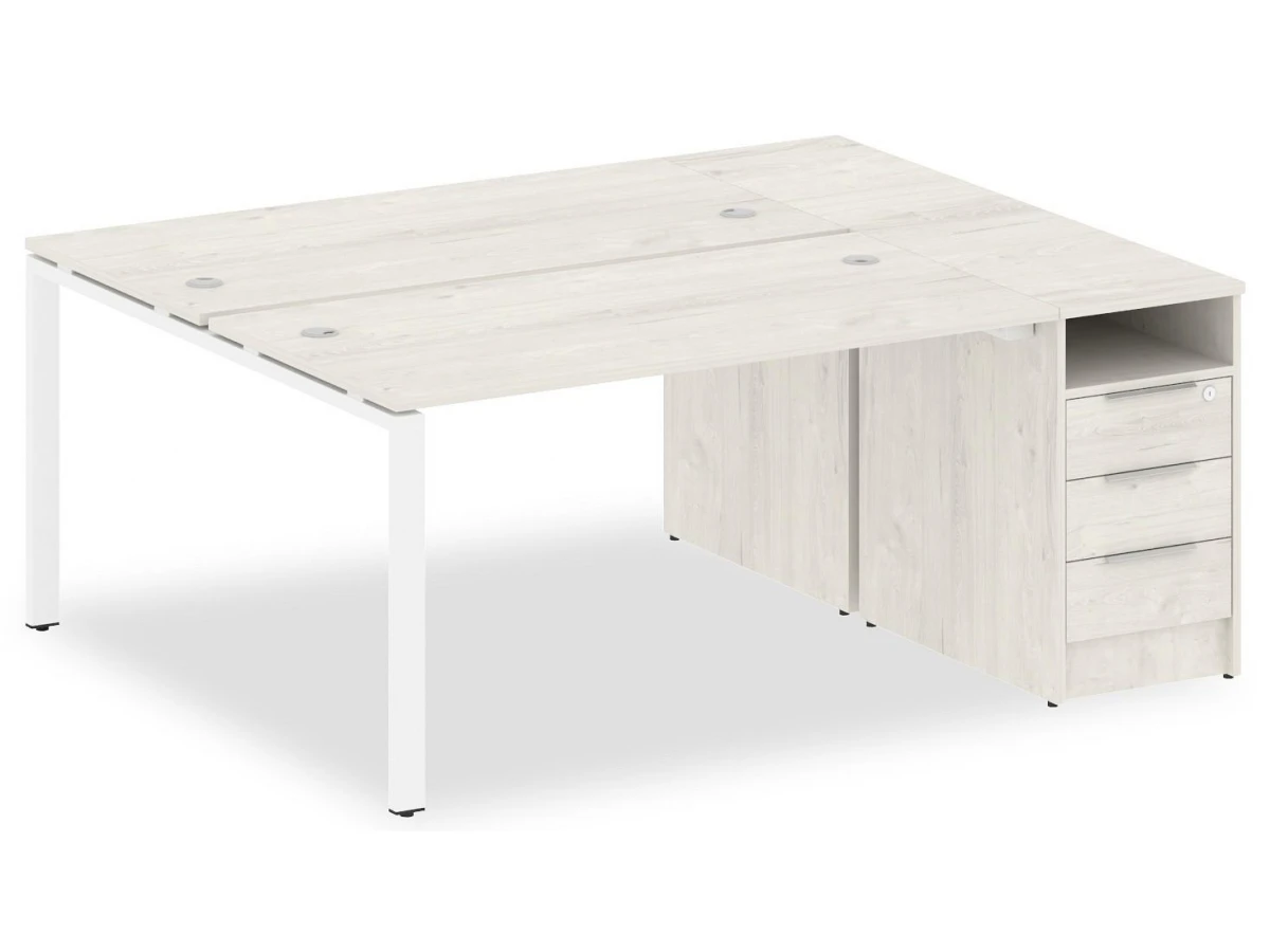 1 полка,3 ящика,, тумбочка:1 полка,3 ящика. Для изготовления корпуса был выбран ЛДСП Е1, металл в оттенке белый, дуб наварра, завершает дизайн матовый верхний слой, гармонично перекликающийся со столешницей. Купить данную модель вы можете по привлекательной цене, равной 43826 руб.