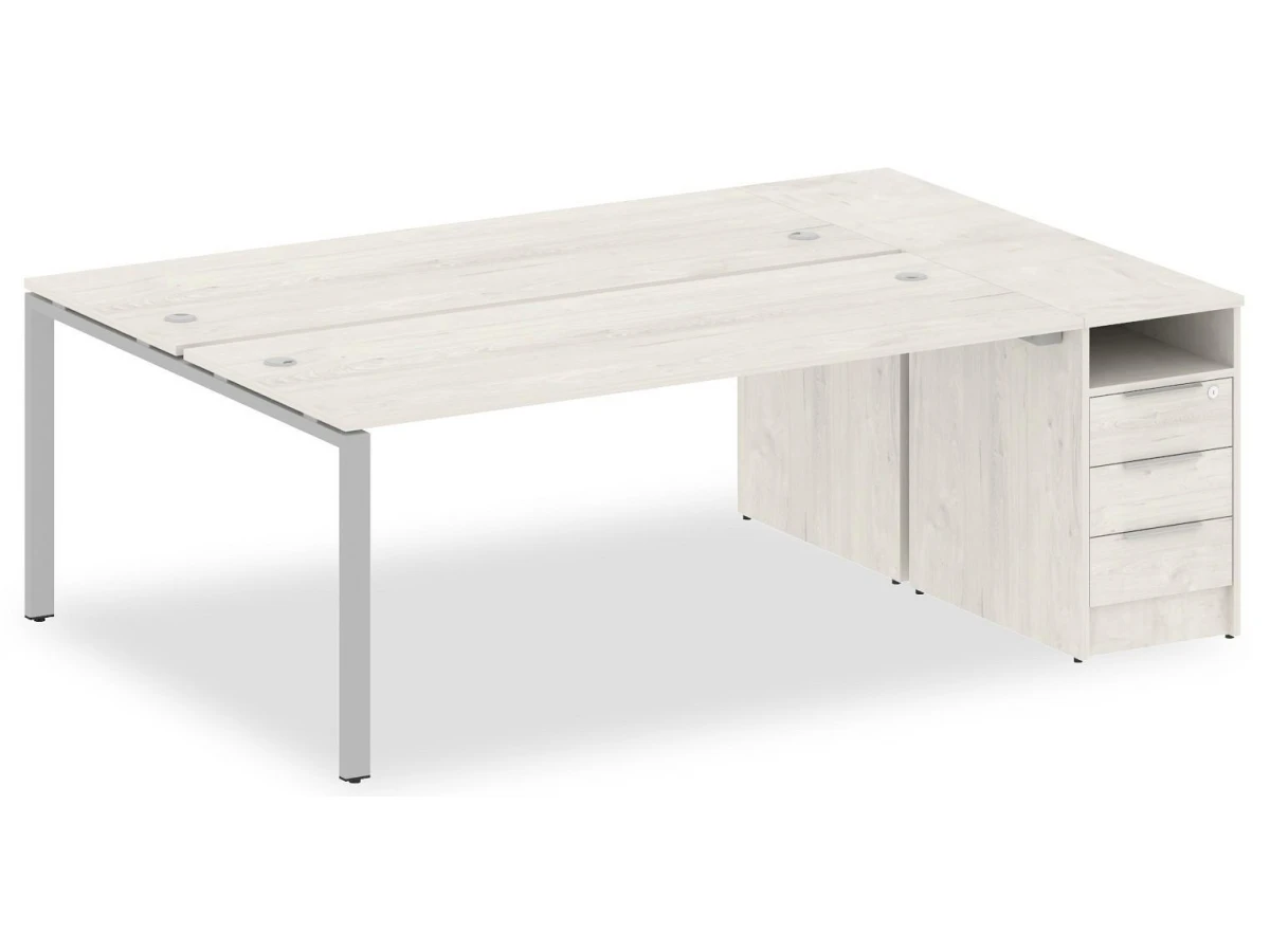 1 полка,3 ящика,, тумбочка:1 полка,3 ящика. Для изготовления корпуса был выбран ЛДСП Е1, металл в оттенке дуб наварра, серый, завершает дизайн матовый верхний слой, гармонично перекликающийся со столешницей. Приобрести данную модель вы можете по привлекательной цене, равной 45348 руб.
