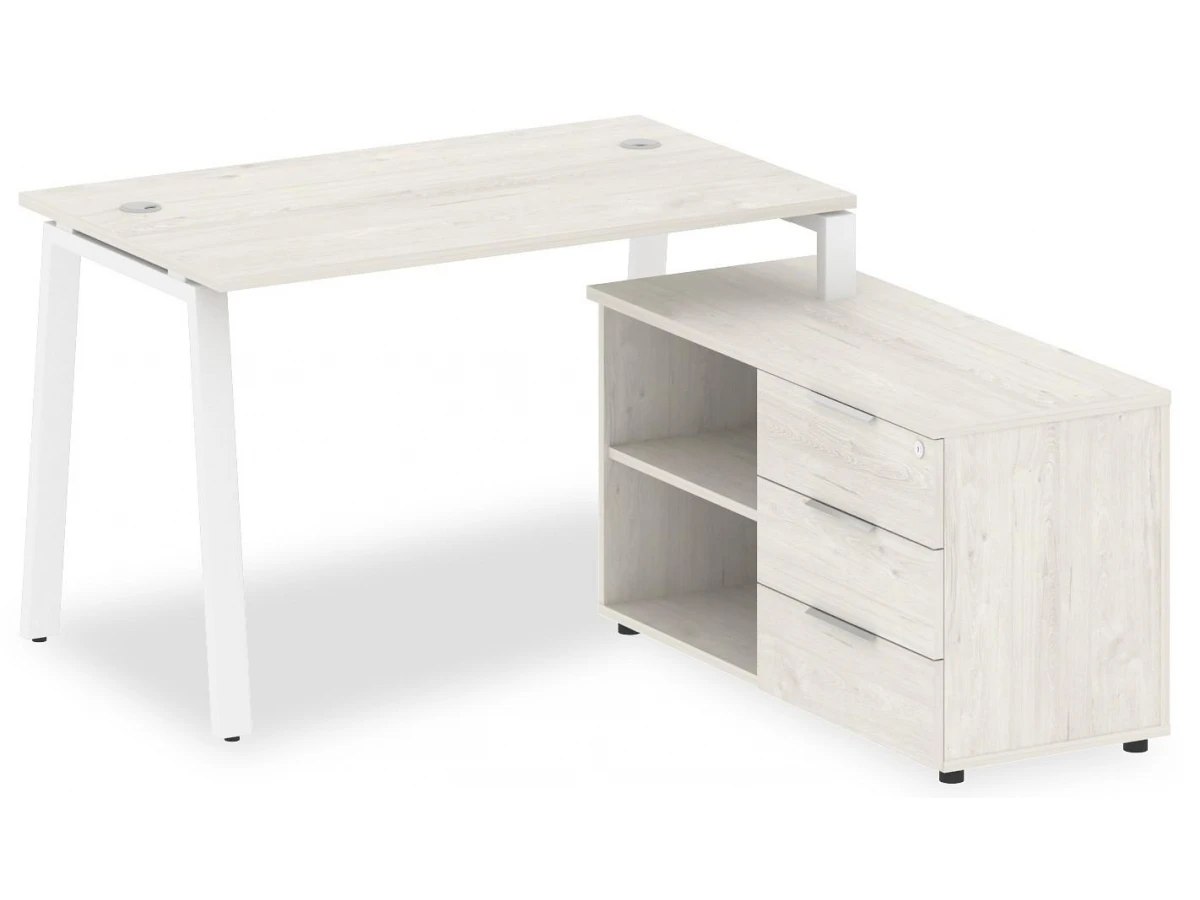 1 полка,3 ящика. Для изготовления корпуса был выбран ЛДСП Е1, металл в оттенке белый, дуб наварра, завершает дизайн матовый верхний слой, гармонично перекликающийся со столешницей. Приобрести данную модель вы можете по привлекательной цене, равной 31613 руб.
