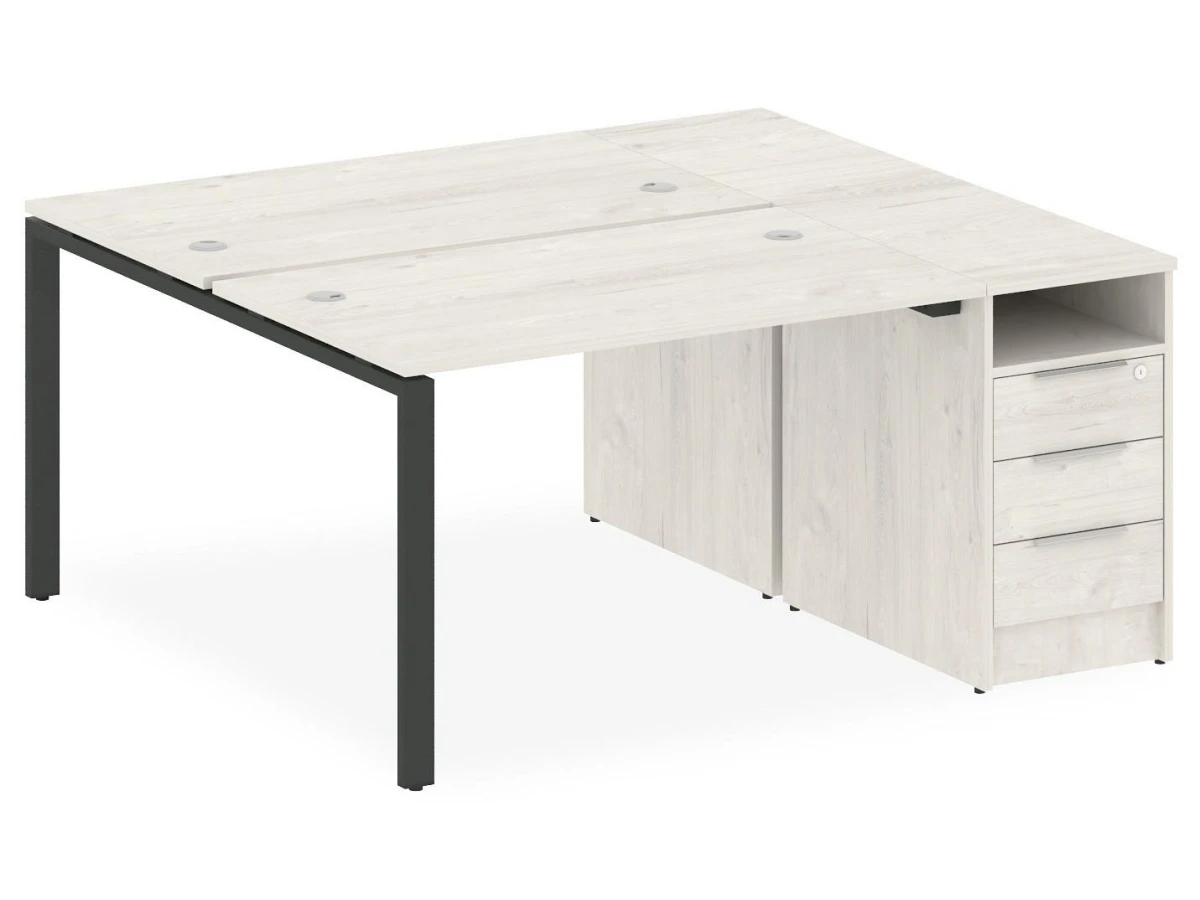 1 полка,3 ящика,, тумбочка:1 полка,3 ящика. Для изготовления корпуса был выбран ЛДСП Е1, металл в оттенке антрацит, дуб наварра, завершает дизайн матовый верхний слой, гармонично сочетающийся со столешницей. Приобрести данную модель вы можете по привлекательной цене, равной 42834 руб.