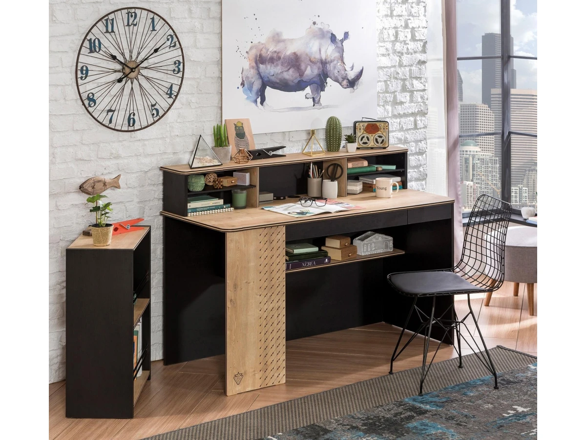За письменным столом дети проводят много времени. Именно поэтому родителям необходимо проследить за тем, чтобы он был удобным, практичным, многофункциональным. Гармоничное сочетание черного и натурального цвета дерева понравится как родителям, так и их ребенку.