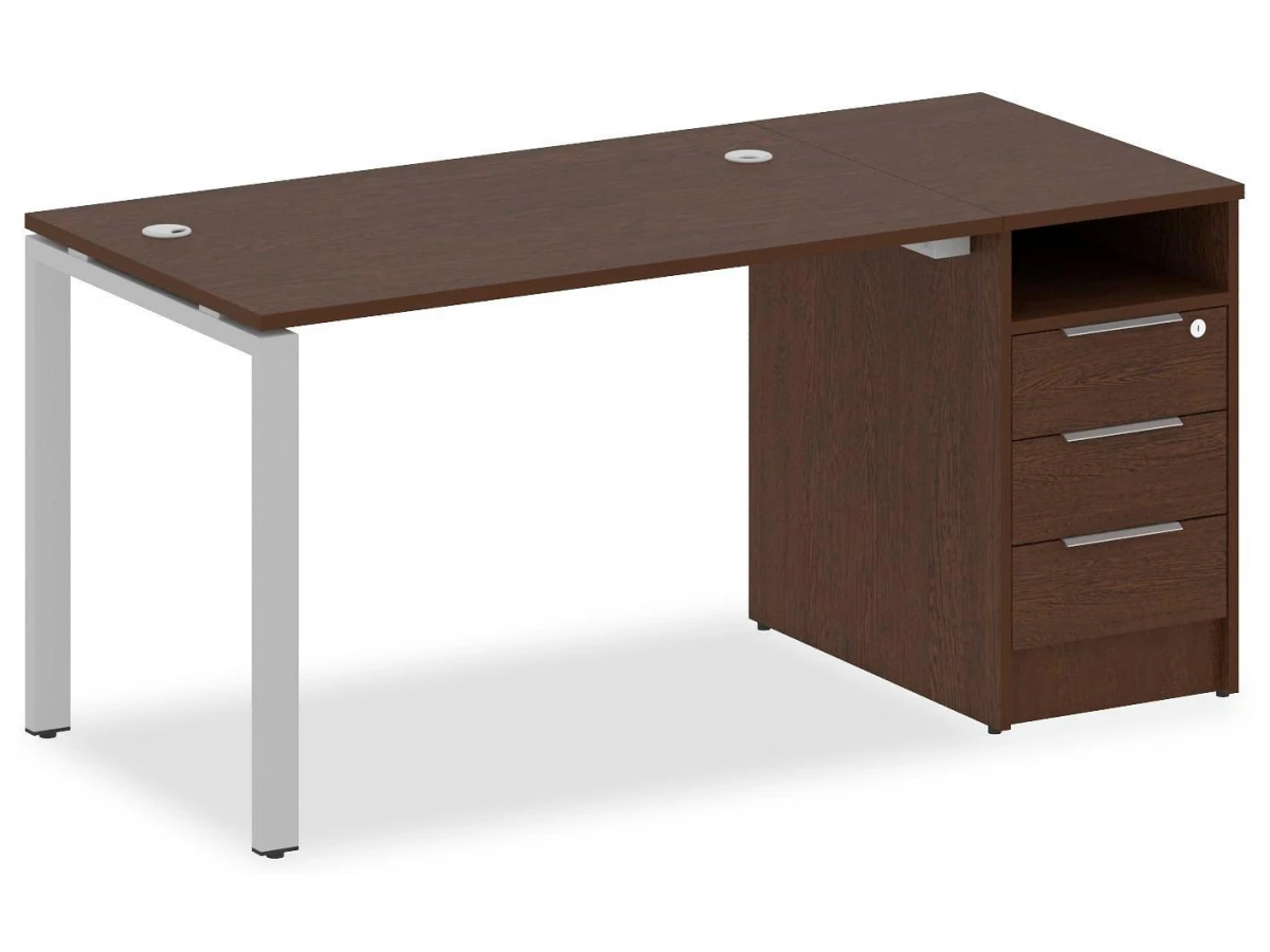 1 полка,3 ящика. Для изготовления корпуса был выбран ЛДСП Е1, металл в оттенке венге, серый, завершает дизайн матовый верхний слой, гармонично перекликающийся со столешницей. Купить данную модель вы можете по привлекательной цене, равной 22455 руб.