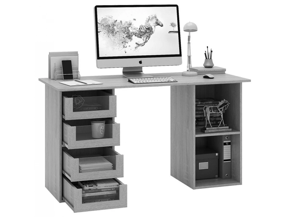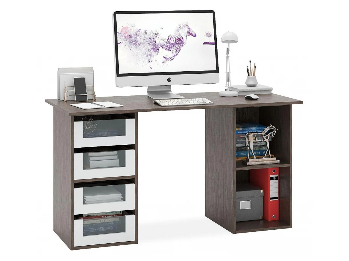 Работа или развлечения – Стол письменный Прайм-64 MAS_STL-PRAIM-64-VB, созданный брендом 2735035, отлично подойдет для реализации любых задач. Данная модель входит в коллекцию «Прайм-64» и способен подстроиться под потребности каждого члена семьи. Благодаря оптимальным размерам изделия (Х1396Х740 мм) вы сможете с комфортом заниматься любимыми и важными делами. Базовая комплектация включает в себя непосредственно письменный стол, тумбочка: 4 ящика,, тумбочка: 1 полка. Для изготовления корпуса был выбран ЛДСП Е1 в оттенке венге, завершает дизайн матовый верхний слой, гармонично сочетающийся со столешницей. Приобрести данную модель вы можете по привлекательной цене, равной 11898 руб.