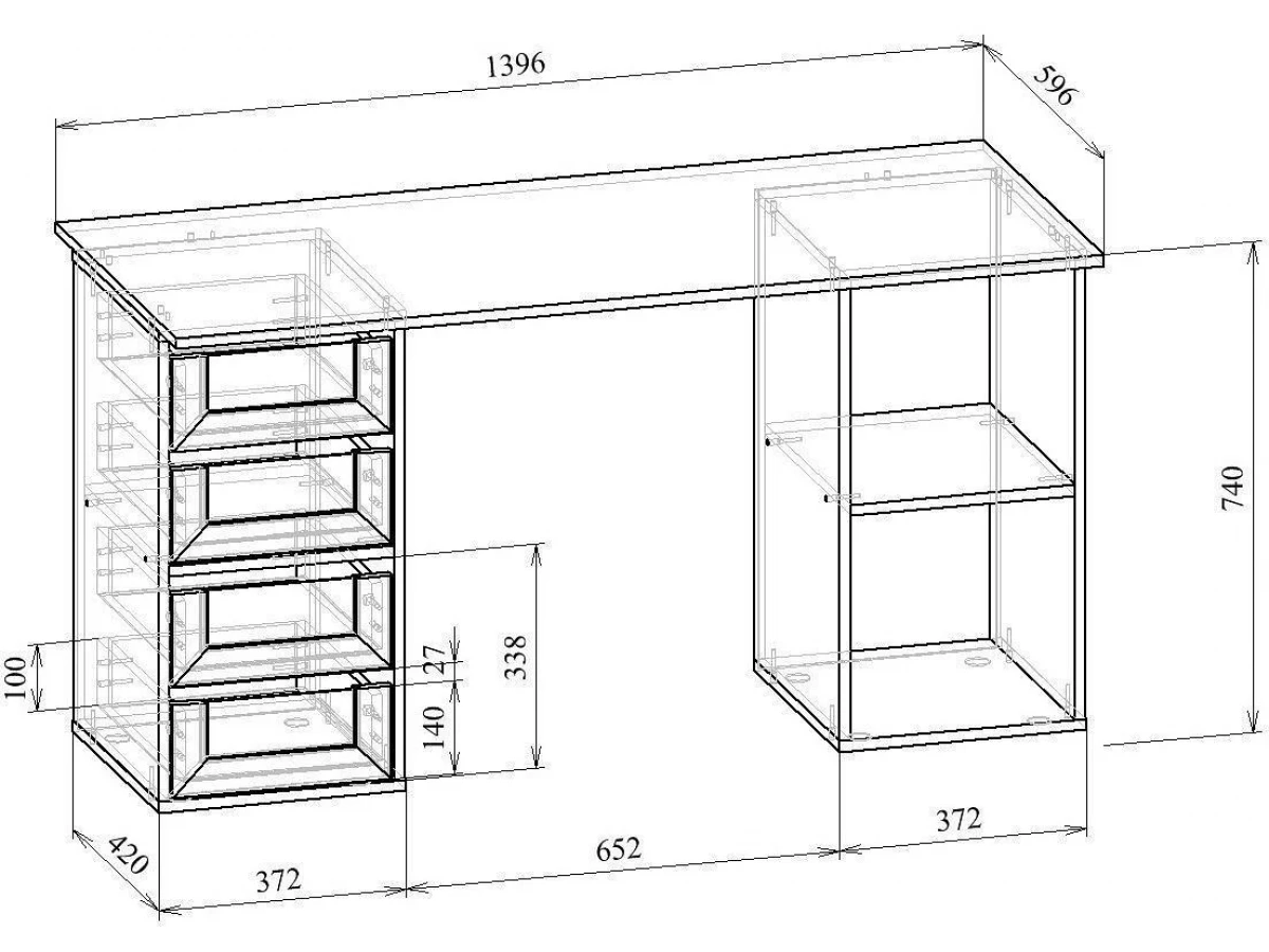 тумбочка: 4 ящика,тумбочка: 1 полка