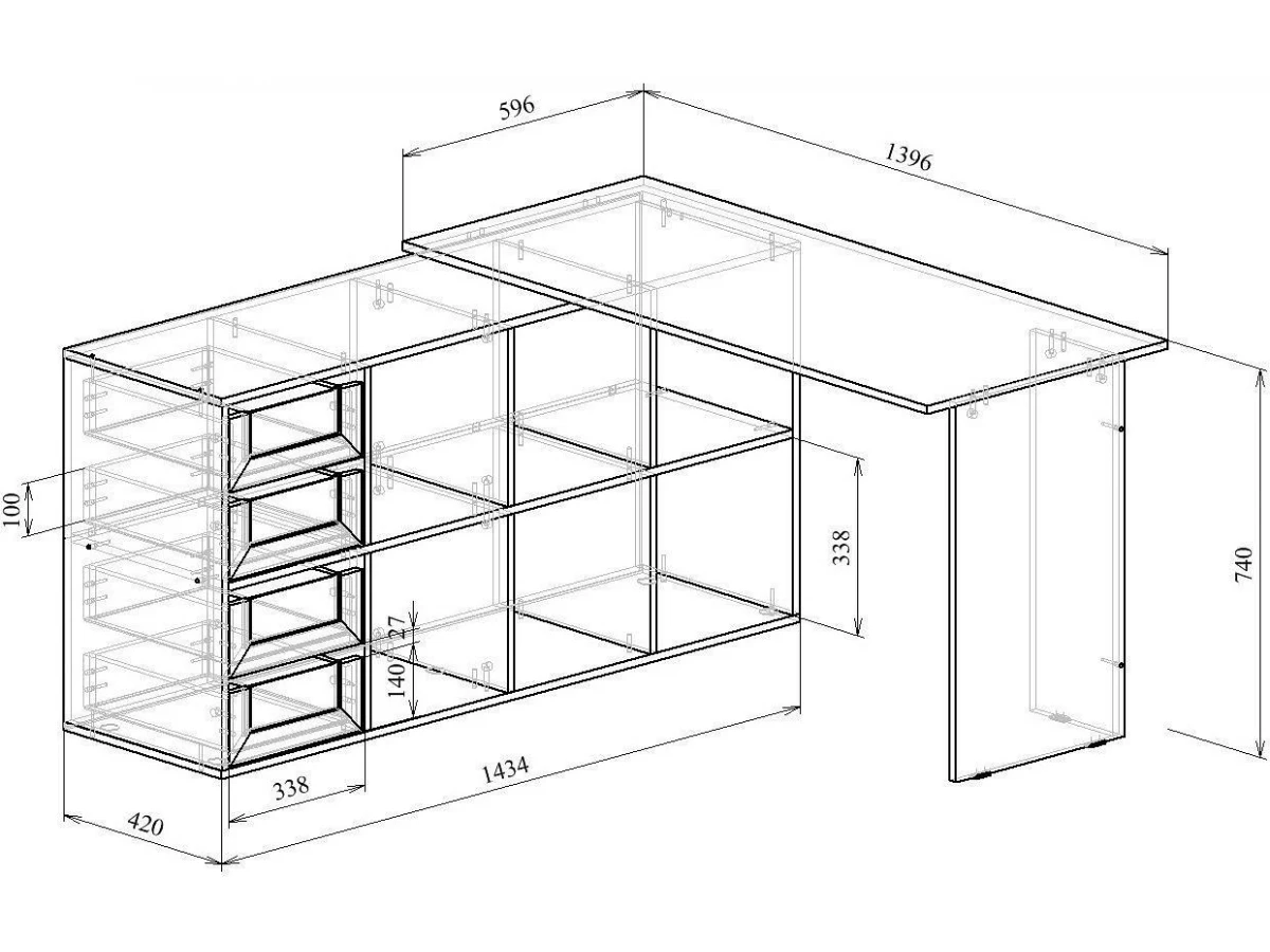 тумба: 3 полки, 4 ящика