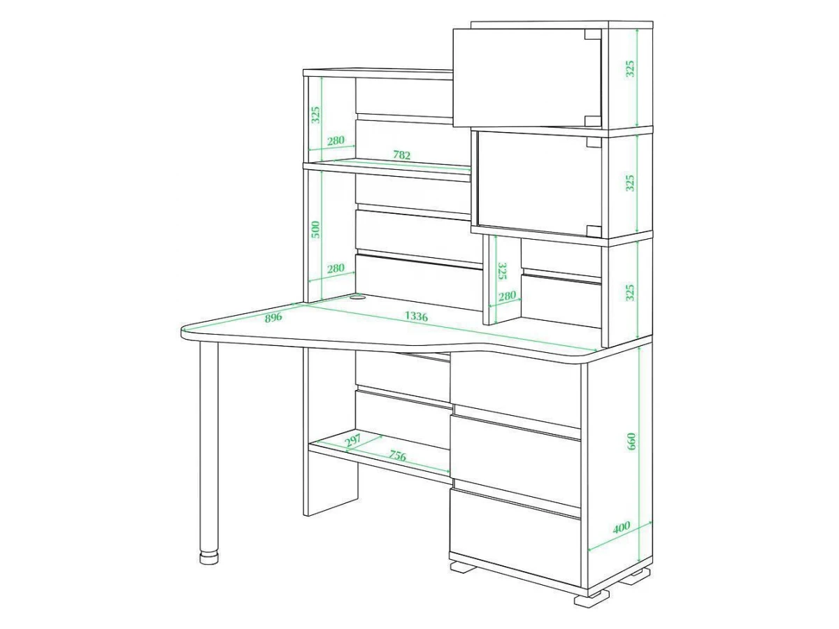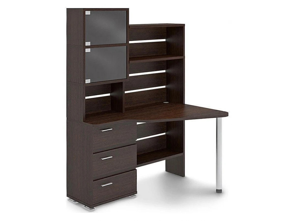 В современном мире мало кто обходится без персонального компьютера. Он необходим нам для работы, учебы или просто общения с близкими. Стол компьютерный Домино СР-322 – то, что нужно, чтобы сделать полноценное рабочее место, позволяющее расположиться с максимальным комфортом. Эта модель создана брендом 2735048, серия «Домино», на товар предоставляется гарантия (12 мес.). Глянцевый, матовый корпус изготовлен из износостойкого и надежного материала (ЛДСП Е1) и отлично впишется в любой интерьер благодаря эффектному оттенку (венге, хром). Столешница, толщина которой составляет 25 мм (материал столешницы), имеет матовый верх, при этом общие габариты компьютерного стола составляют 1340 мм в ширину и 1770 мм в высоту. Производитель также включил в комплект надстройка: 2 дверцы, 3 полки,, тумбочка: 3 ящика,, 1 полка.