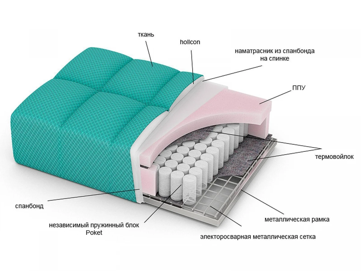независимый пружинный блок «Pocket», ППУ, холкон