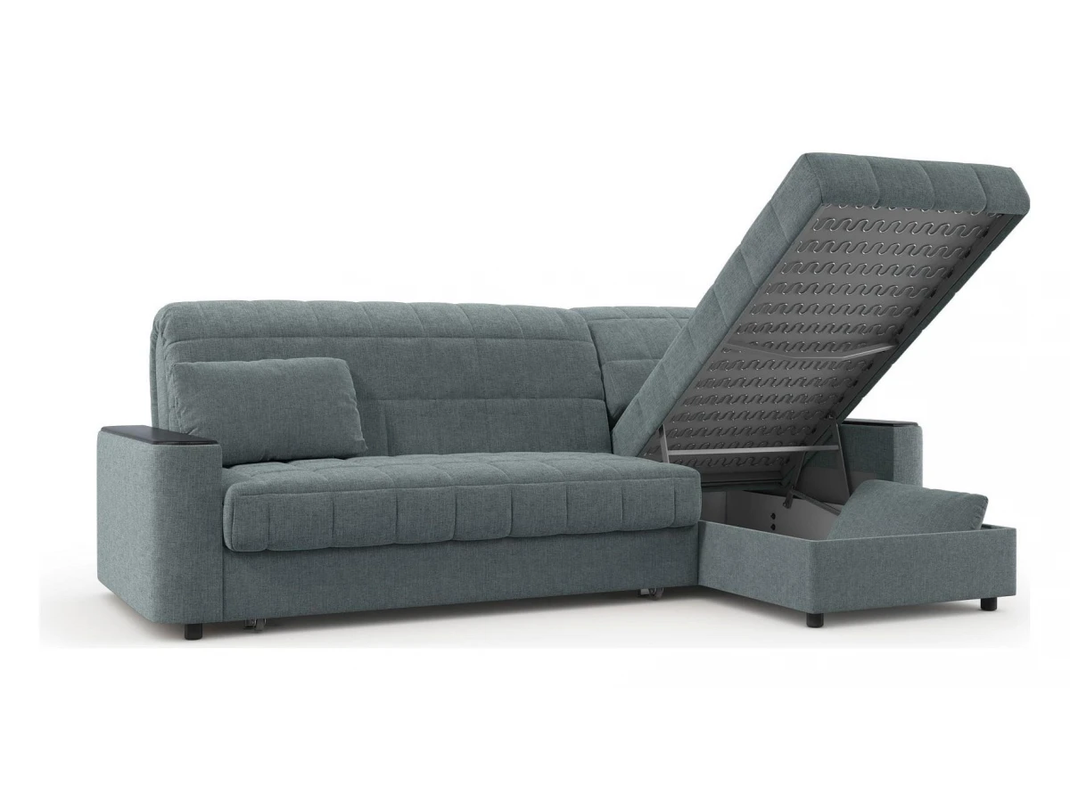 надежный механизм трансформации подходит для ежедневного использованияпри минимальных габаритах диван обладает отличным спальным местоморигинальный декор подлокотников выполняет функцию практичных столешницчехол модели съемный для чистки.