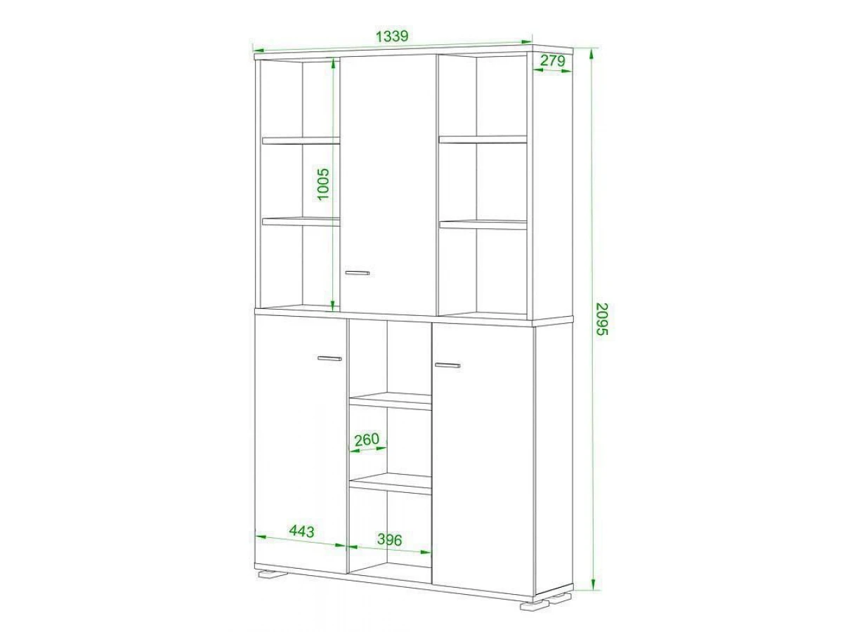 3 дверцы, 13 полок