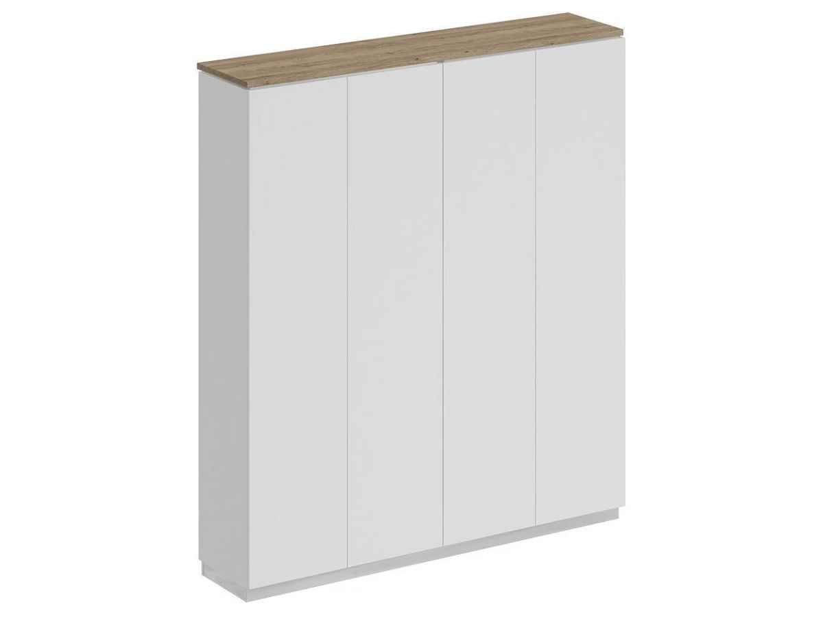 Шкаф состоит из 2-х стеллажей, топа на 2 шкафа, цоколя и дверей.