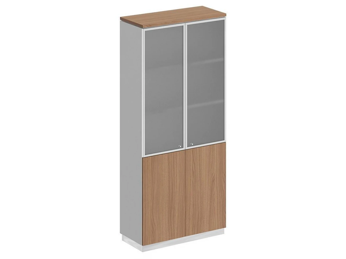 Две двери со стеклом в металлической рамке без замка с системой открывания Push To Open (без ручек).