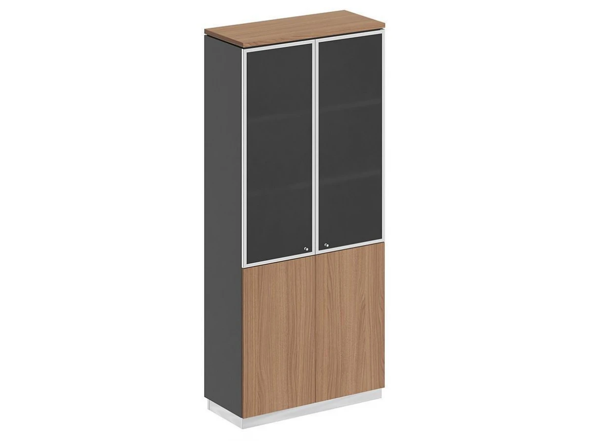 Две двери со стеклом в металлической рамке без замка с системой открывания Push To Open (без ручек).