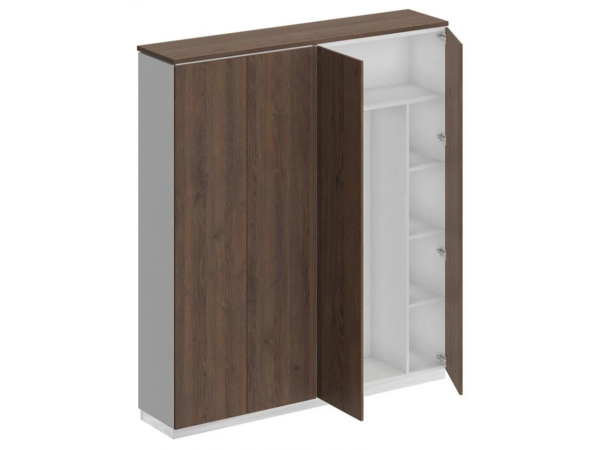 Шкаф состоит из закрытого шкафа для документов и шкафа для одежды с дополнением под общим топом под общим топом и цоколя на 2 шкафа.